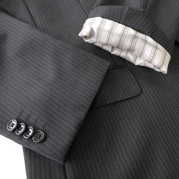 落ち着いたストライプ柄が品格を演出するシングルスーツです。 上質なウール素材を使用し、しなやかな風合いと自然な光沢を備えた仕上がり。 雑菌の増殖を抑えていやな臭いを軽減し、静電気を抑制する効果も兼備している【nanocat(ナノキャット)】ハイブリッド触媒加工が施されています。 また、スラックスには折り目の形状記憶と静電気抑制効果のある【エレクール】加工が施されています。 腰回りにゆとりのある2タックのスラックスで、軽快な穿き心地が魅力です。 【ジャケット】 ・総裏地 ・フロントは2つボタン ・サイドベンツ ・袖先は4つボタン(開き見せ) 【スラックス】 ・2タック ・ジッパーフライ ・緩やかなテーパードシルエット |