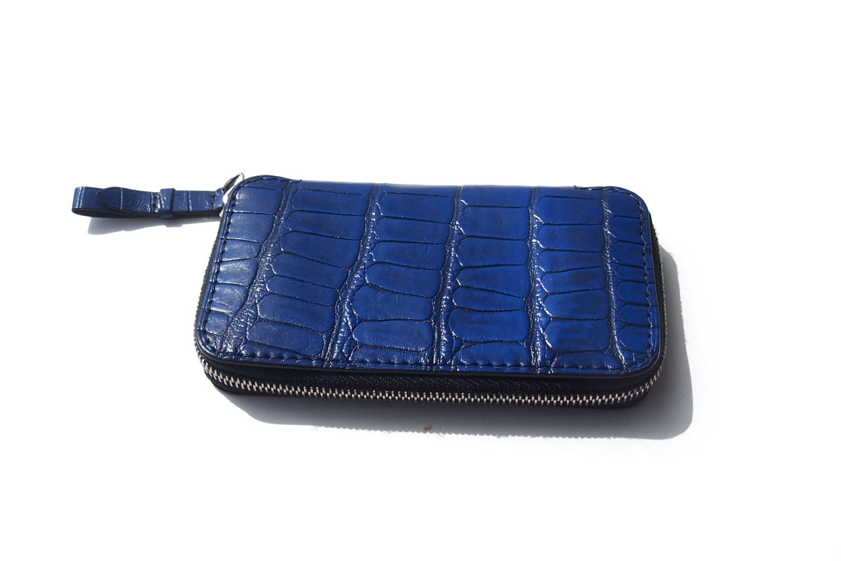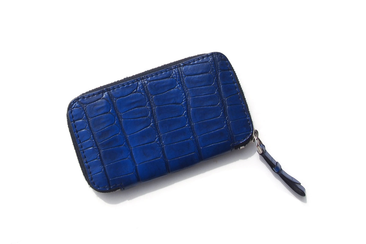 アリゲーターの耐久性、ゴートレザーの柔軟性、そして鮮やかな発色が魅力のコインケース。