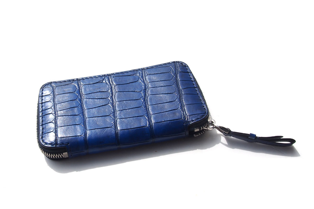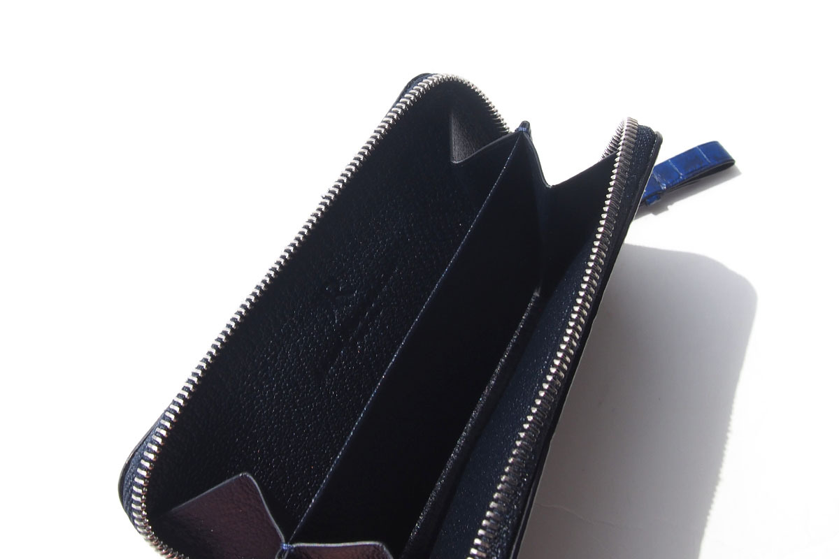 アリゲーターの艶やかさとゴートの柔らかさが絶妙に調和し、使うほどに手に馴染みます。