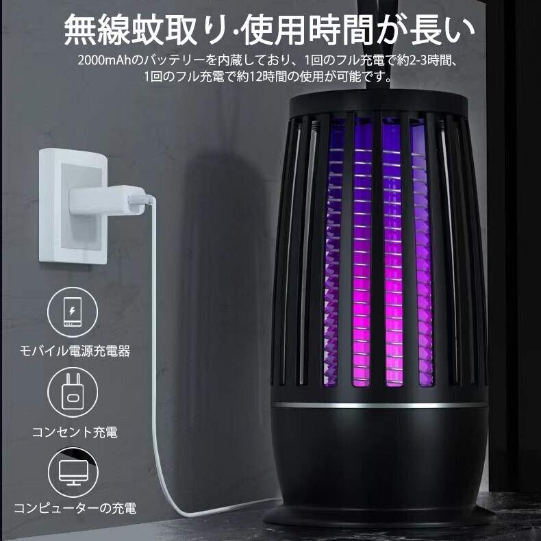 電源ボタン:「1回目押 誘虫電撃殺虫機能」、「2回目押 常夜灯」、「3回目押 電源OFF」