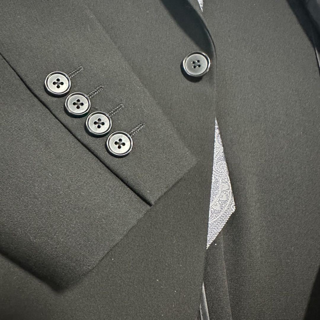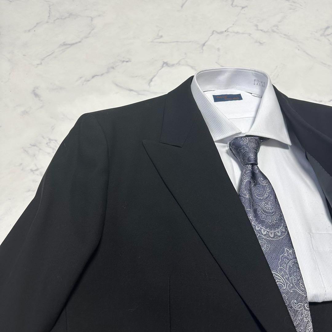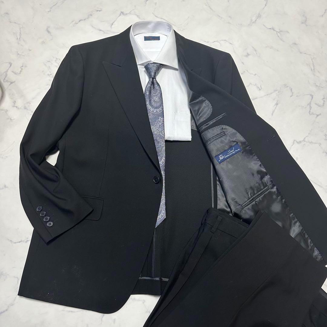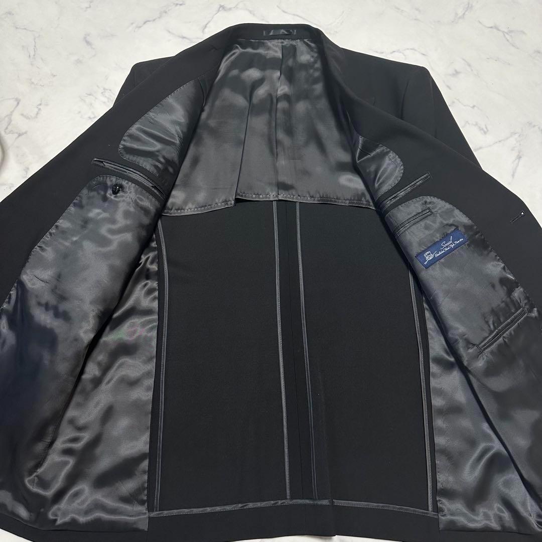 美品 希少 カシミヤ混フォーマルスーツ ブラック 黒 冠婚葬祭 アジャスター付