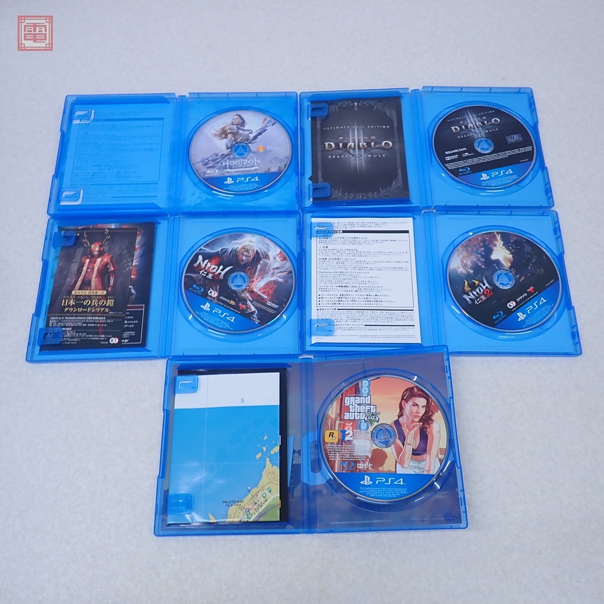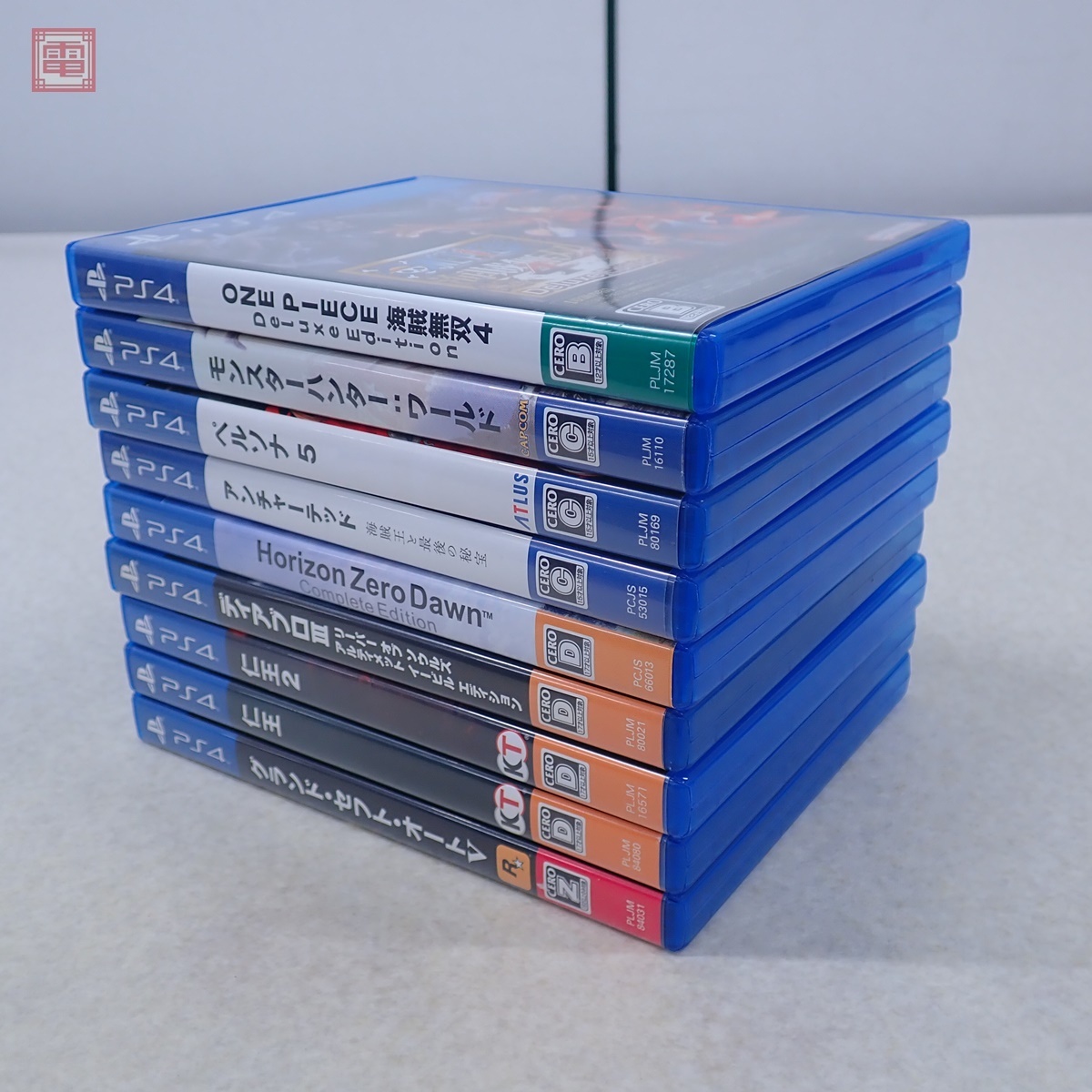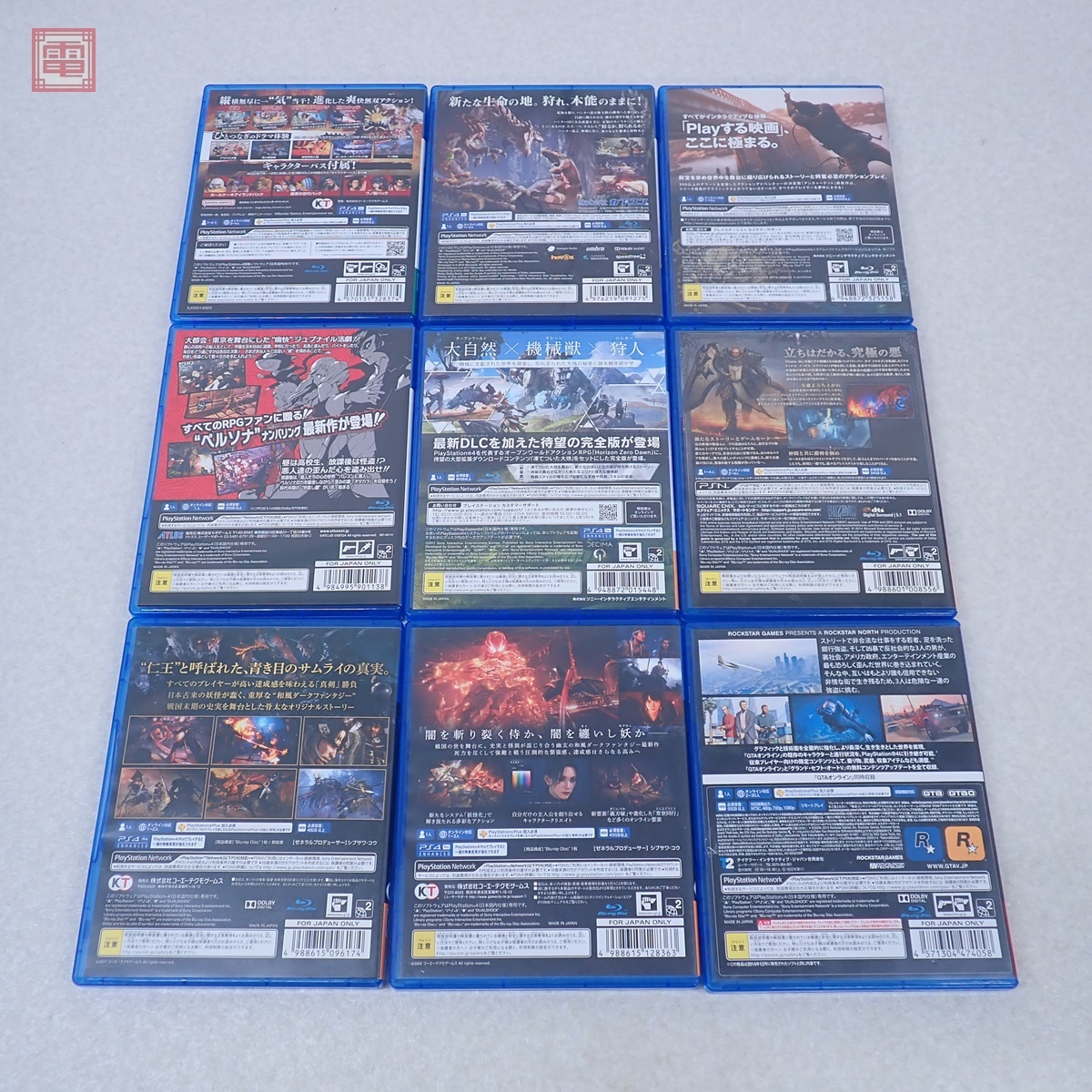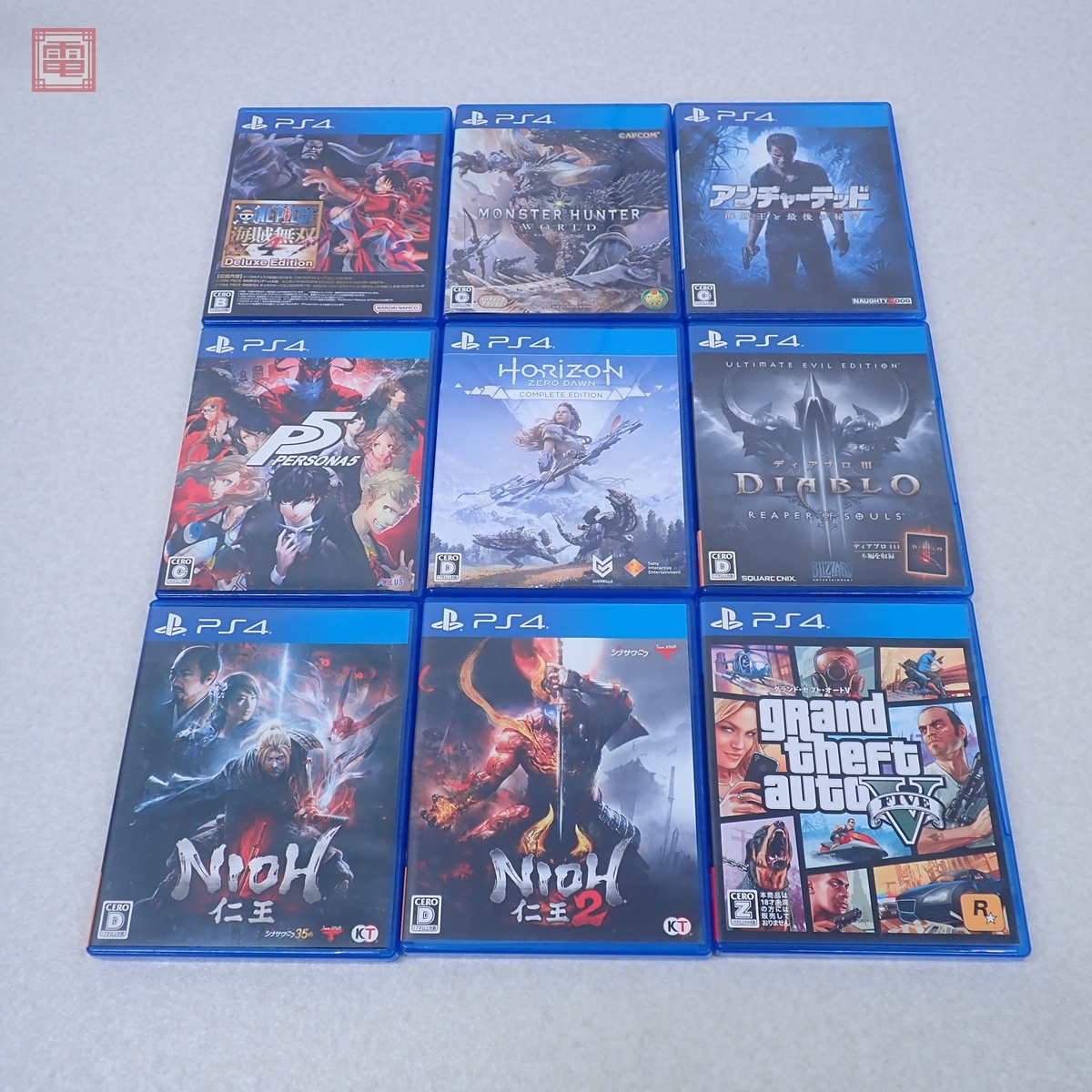 PS4 プレステ4 ペルソナ 5/仁王/2/アンチャーテッド/ディアブロIII 等 まとめて 9本セット 箱付 ダブりなし ■タイトルは写真にてご確認ください。 ■ケースにスレ、角スレ、汚れ、ヤケ、キズがあります。 ■取扱説明書にスレ、角スレ、汚れ、折れがあります。 ■盤面にキズがあります。 ■上記以外は未チェックです。 ※こちらの商品には18歳以上が対象となるZ指定のゲームソフトも含まれております。 ■写真のものが全てです。付属物の有無や状態については写真からご判断ください。 ■チェックに使用したモニターやチェック機器等は、特に表記がない限りは付属いたしません。 ■商品到着後、当店の保証期間中は、商品及び箱や取説、付属品などを1つでも廃棄や破損をしないようにお願い致します。廃棄や破損をした場合、商品に問題があった場合でも対応や返金などの対処ができなくなります。 | |||