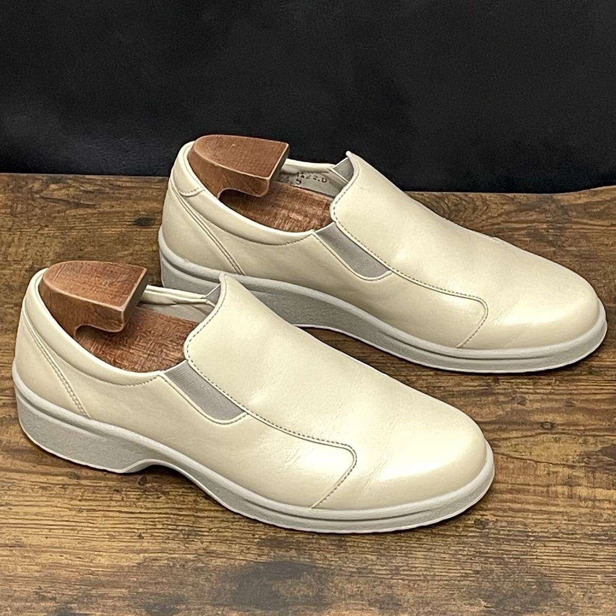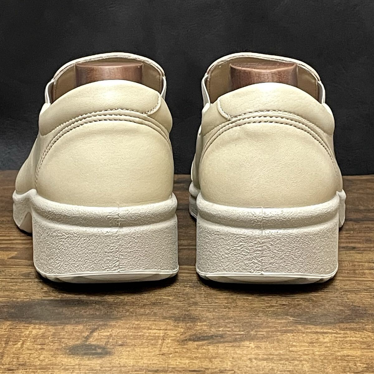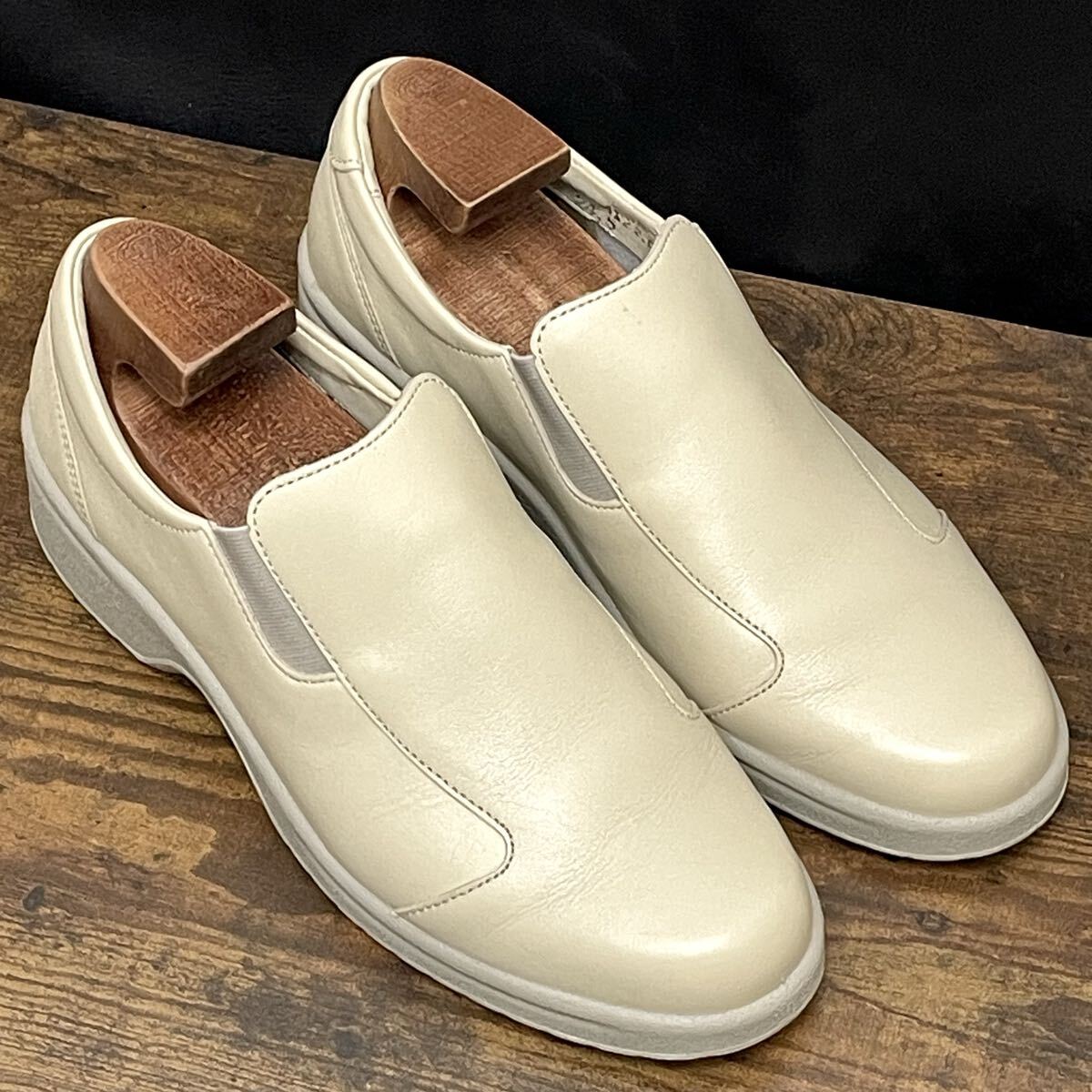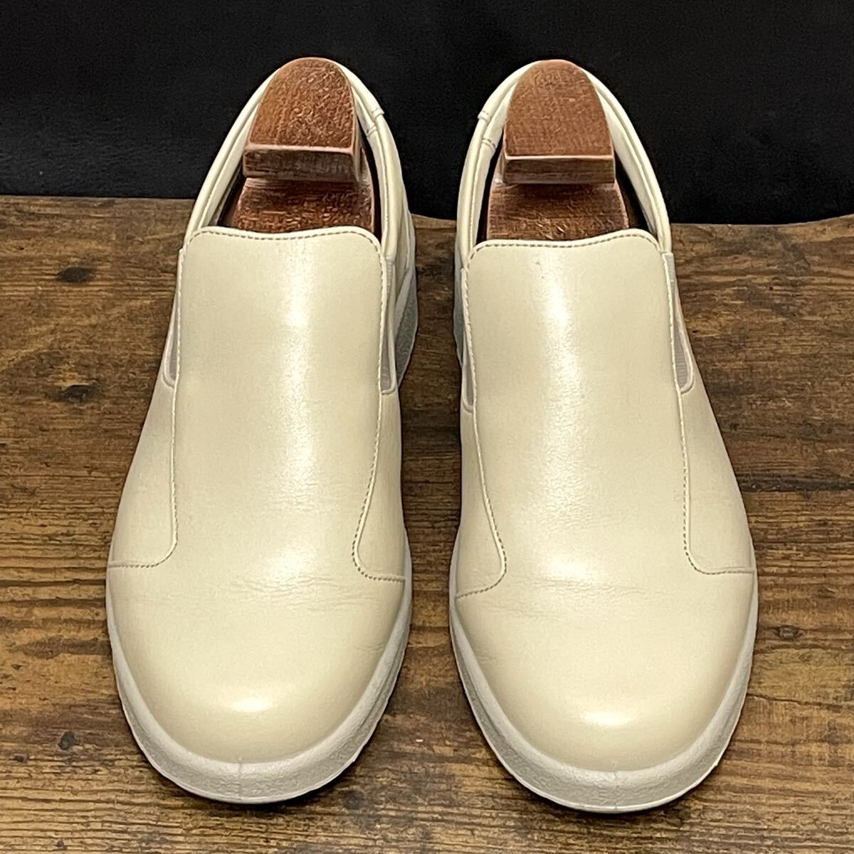 オフィスカジュアルからタウンユースに亘って活躍するアイボリーカラーのレザースリッポンです。