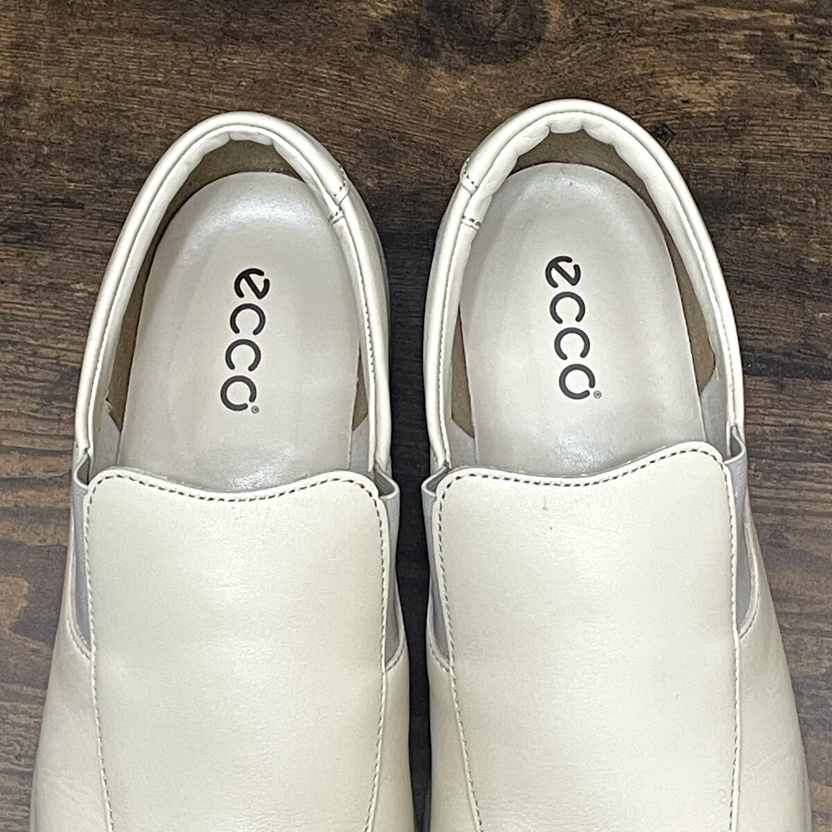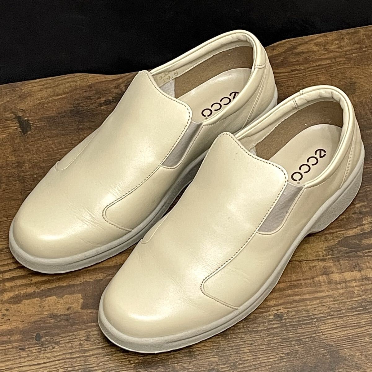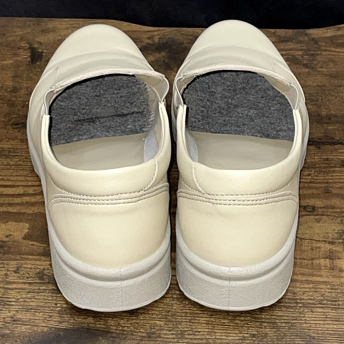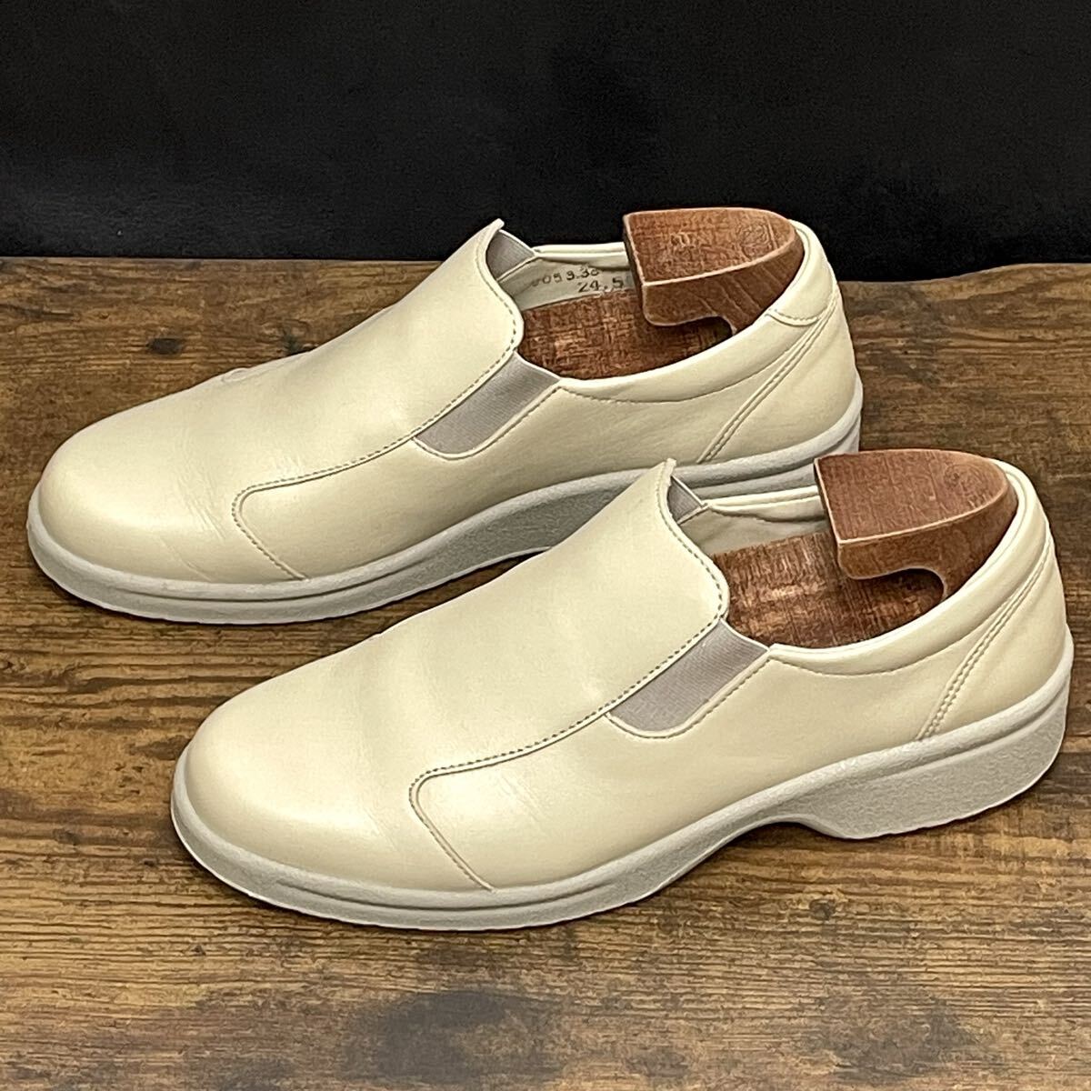 オフィスカジュアルからタウンユースに亘って活躍するアイボリーカラーのレザースリッポンです。