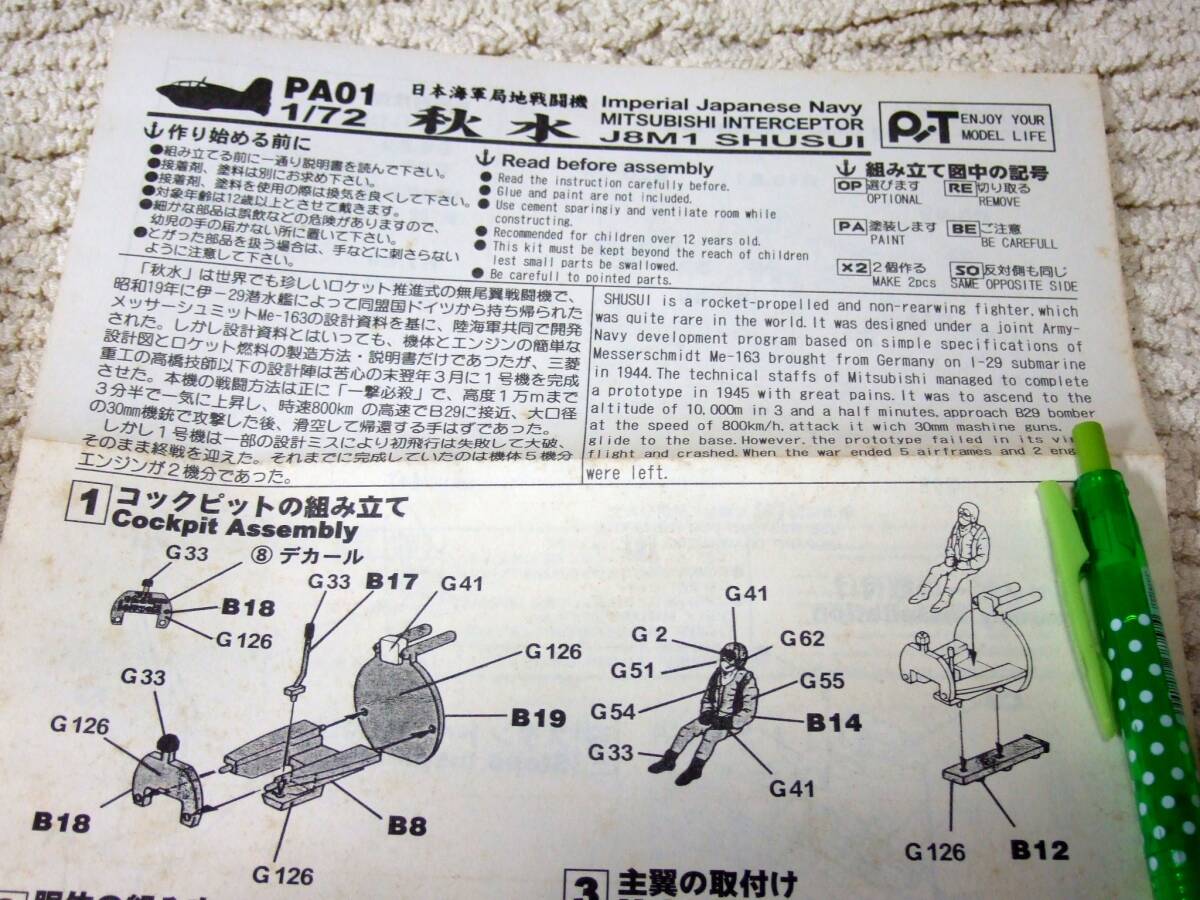 ピットロード 1/72 日本海軍局地ロケット戦闘機 J8M1《秋水》の出品になります。