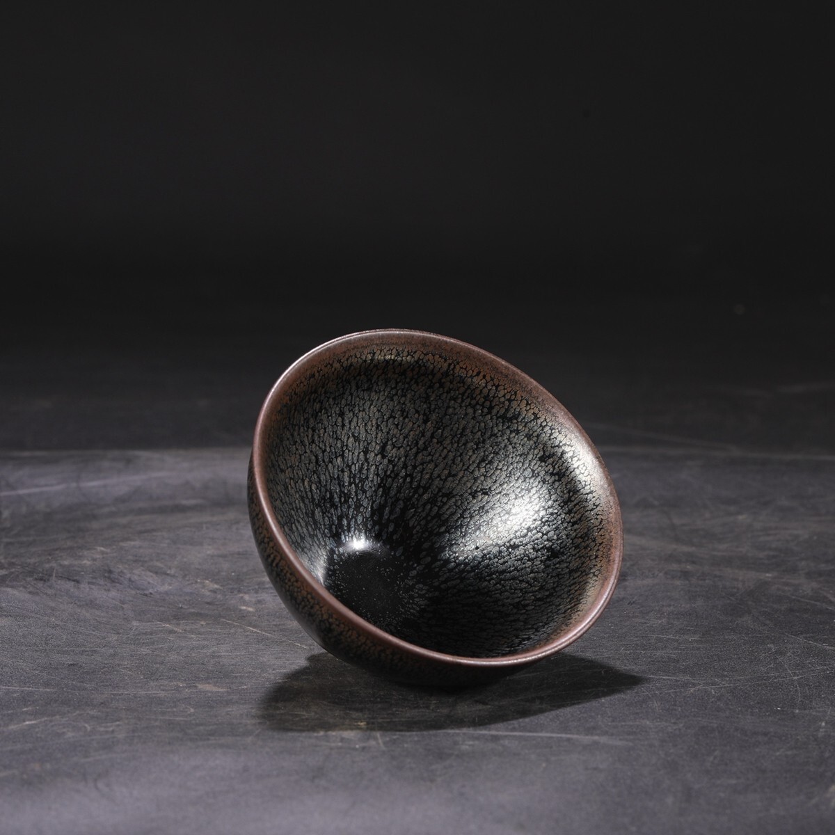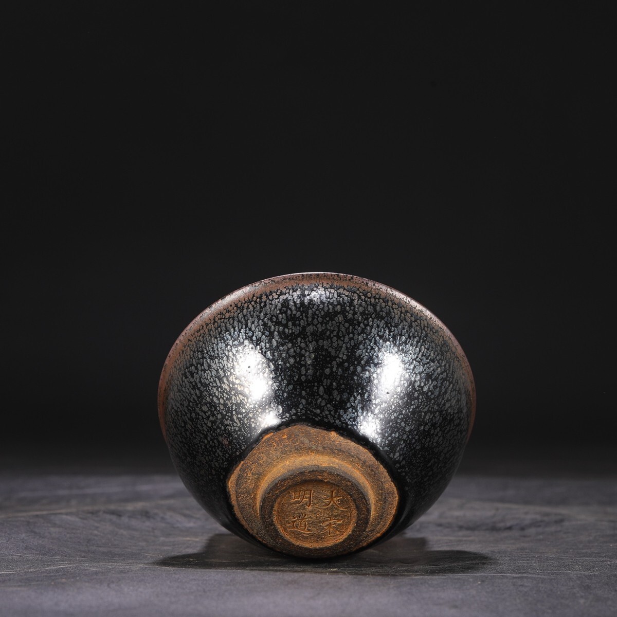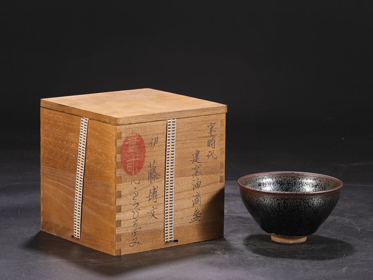 「宋 建窯 陶磁器 油滴盞」染付 置物 擺件 古賞物 中国古美術 旧蔵出