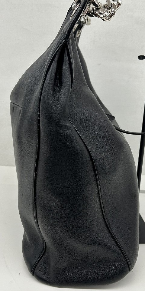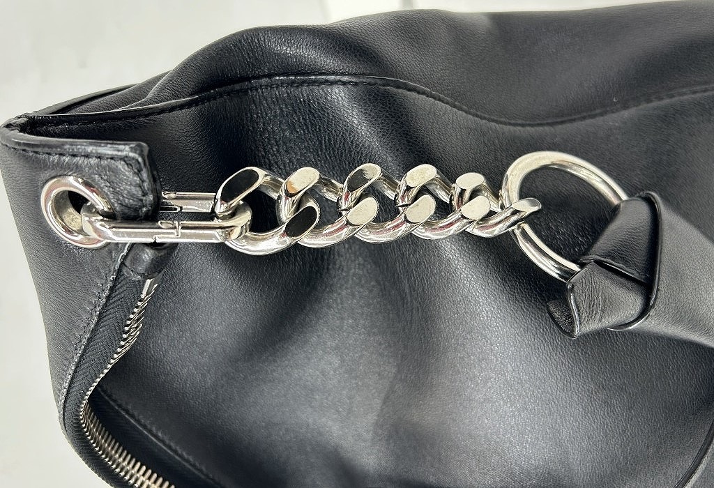 商品説明チェーンとレザーのコンビネーションがとてもクールなワンショルダーバッグ。