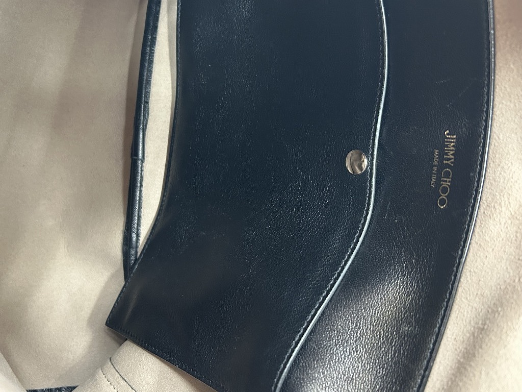 ファスナーの持ち手など、ジミーチュウらしいこだわりのデザインが光ります。