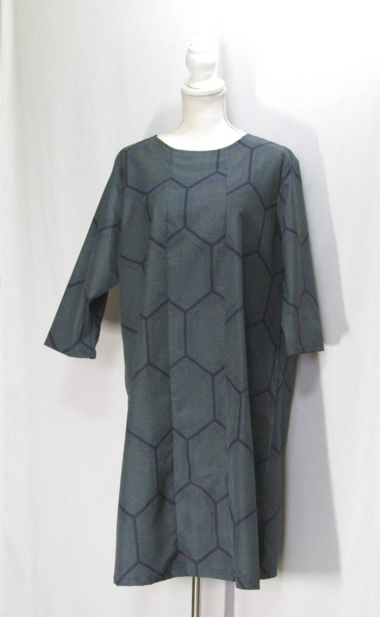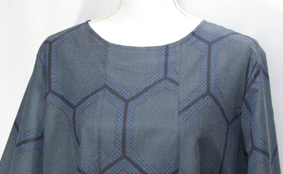 (1012)着物リメイク ハンドメイド「ワンピース」大島 亀甲