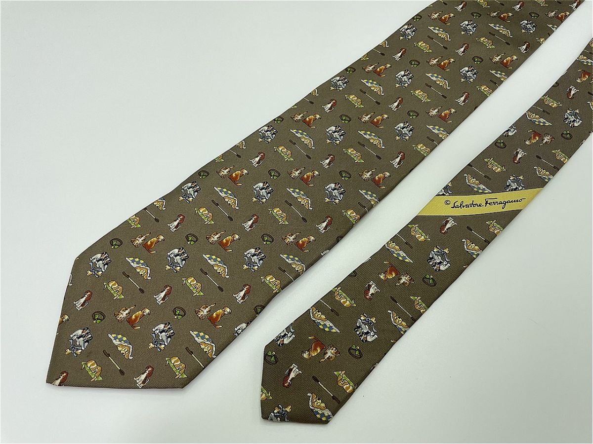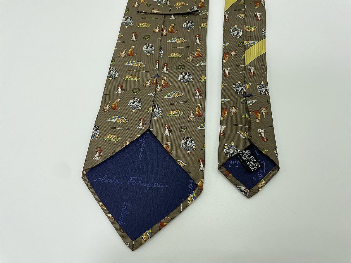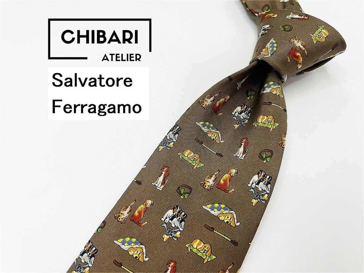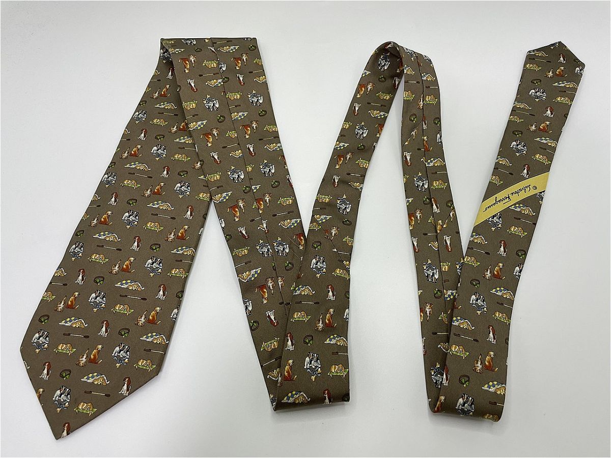 【超美品】Salvatore Ferragamo フェラガモ ワンちゃん柄 ネクタイ 3本以上 送料無料 メンズ ブラウン 0901188