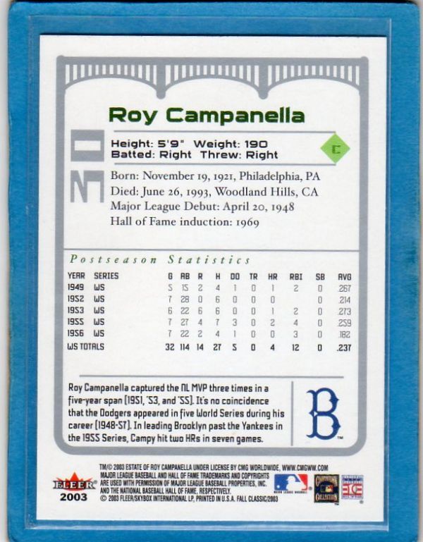 ★☆ロイ・キャンパネラ カード Vol.2 2003FLEER 殿堂入り☆★ | |