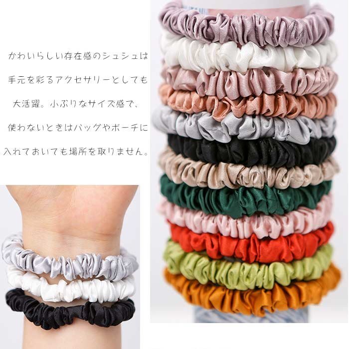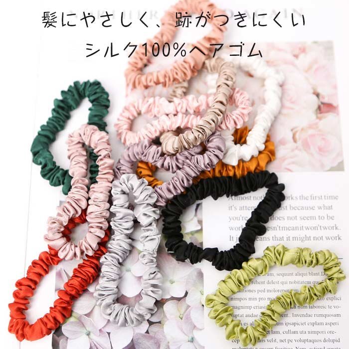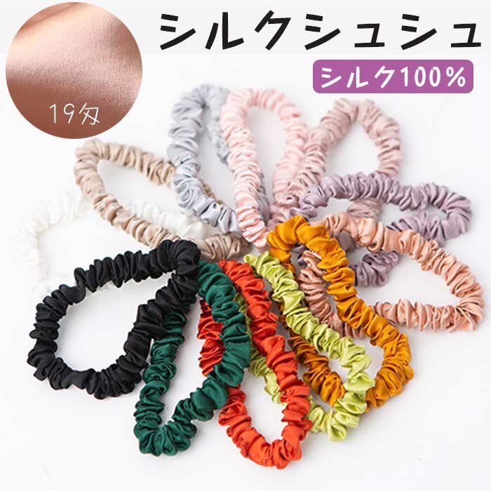 シルクシュシュ レディース 髪ゴム シュシュ シルクヘアシュシュ 髪留め 100%シルク 19匁 リングゴム ヘアアクセサリー☆17色選択/1点