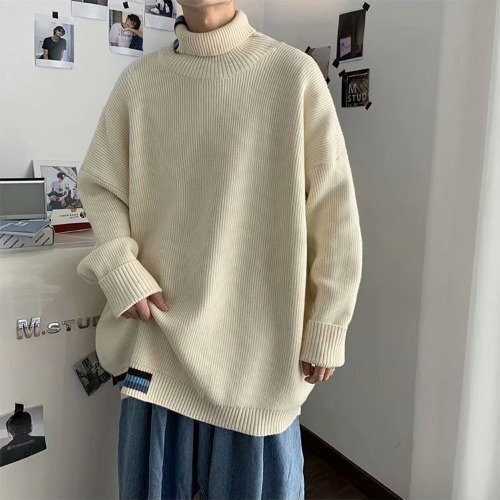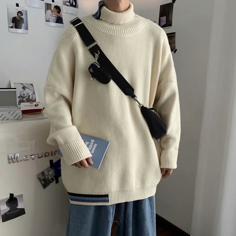トップス おしゃれ セーター ハイネック メンズトップス スリム カジュアル ホワイトXL