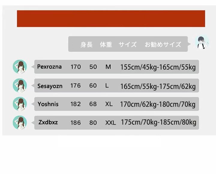 "素 材:ポリエステル サイズ:画像をご参照ください。 ※サイズには多少の誤差がございます。 ※注意事項: 通常より ワンサイズ 大き目がお勧めです。 サイズが合わない理由の交換や返品はお断りさせていただいております。予めご了承下さい。 ご入金が確認後,発送まで少し時間がかかりますので、お急ぎの方はご注文をお控えいただきますようお願いいたします。 海外インポート品なので,糸の継ぎ目や多少のほつれ、または色ムラなどが生じている場合がございます。ご理解の上ご購入ください。"