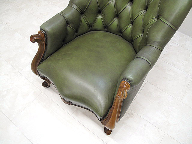 また、真鍮鋲の繊細な装飾が施されたデザインは、時代を超えたエレガンスと重厚感を見事に融合。熟練の職人による丹念な手仕事が生み出す精緻な仕上げは、唯一無二の美しさを放ち、世界中のインテリア愛好家を魅了し続けています。
