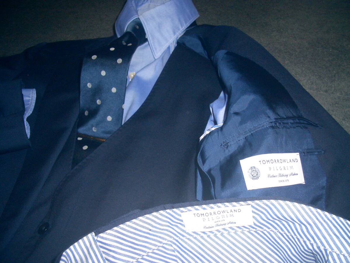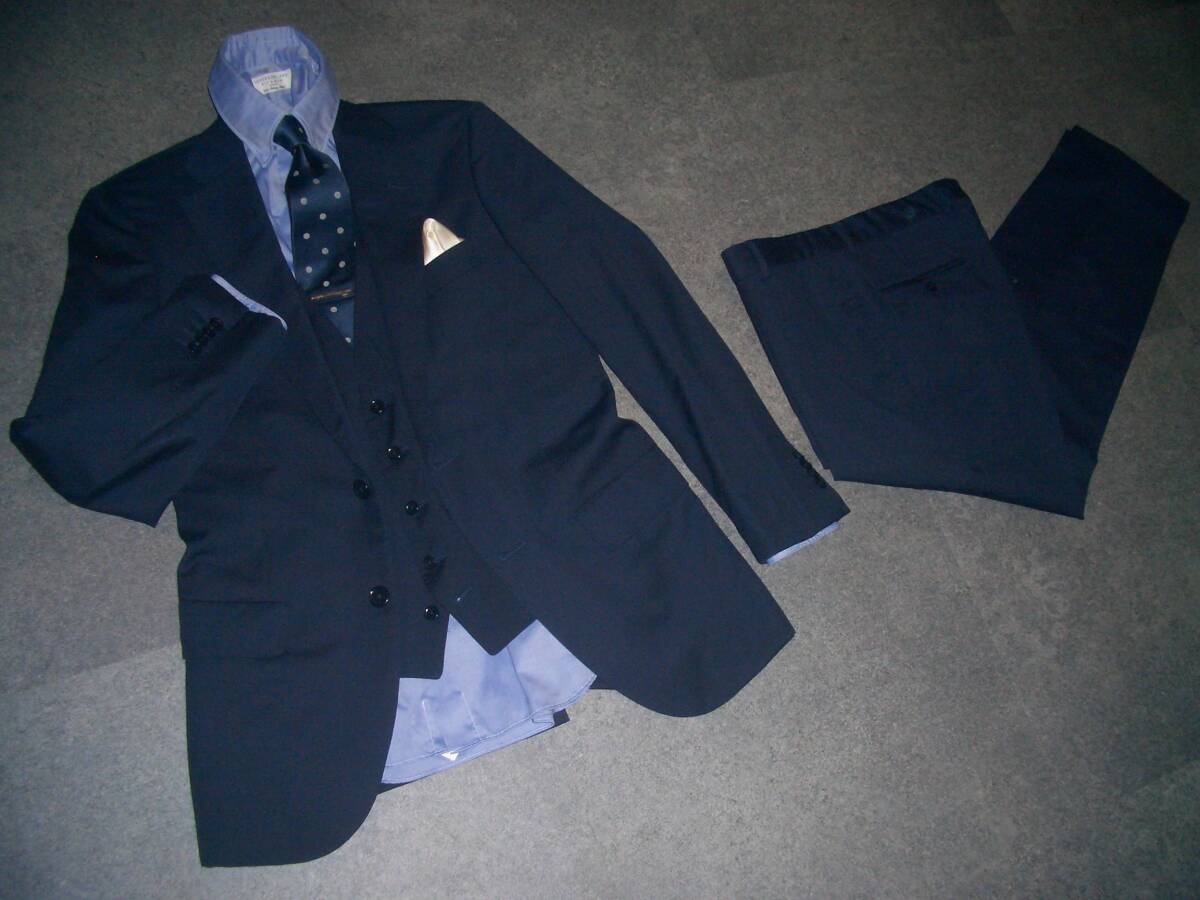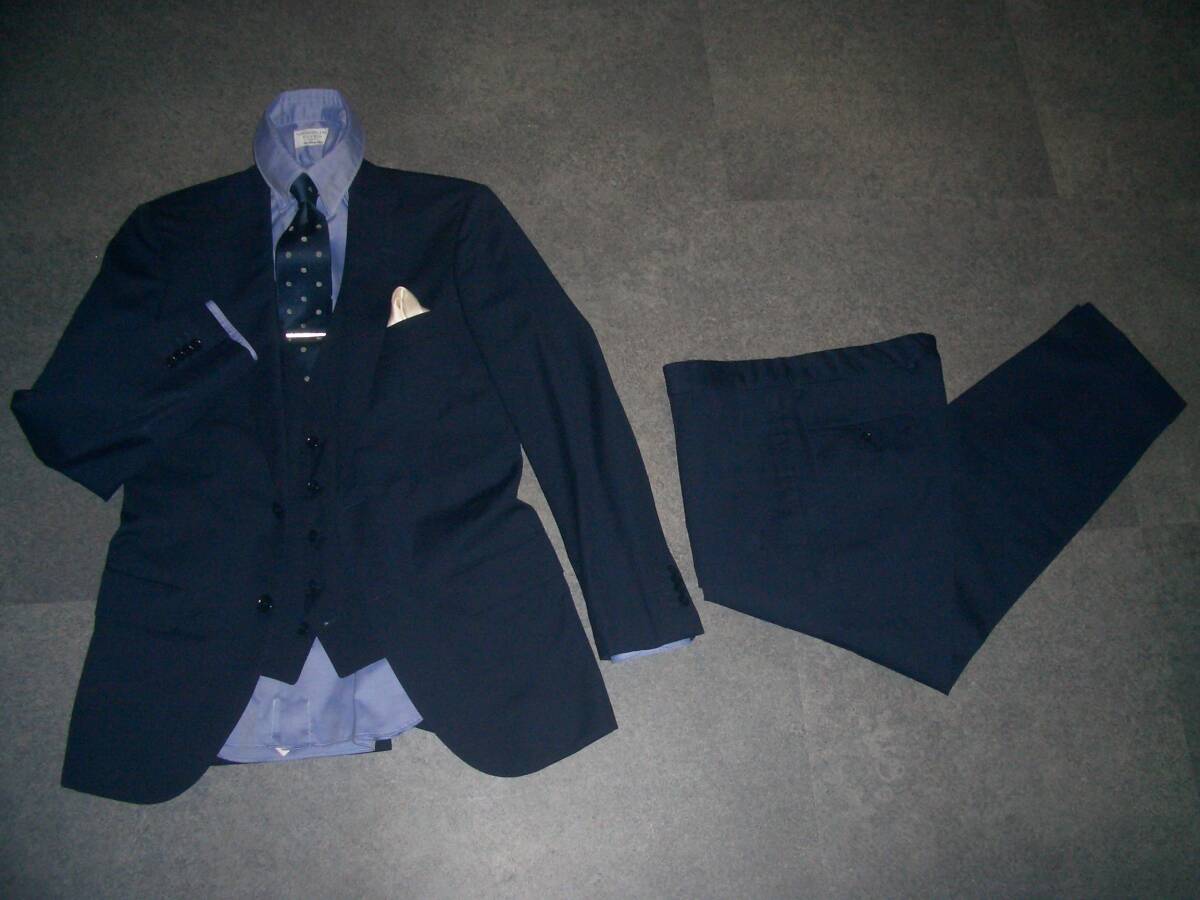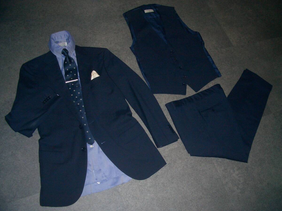 19万円 美品 トゥモローランド×ゼニア PILGRIM 3ピース スーツ 44 無地ネイビー TOMORROWLANDジャケットパンツベストスリーピースセット