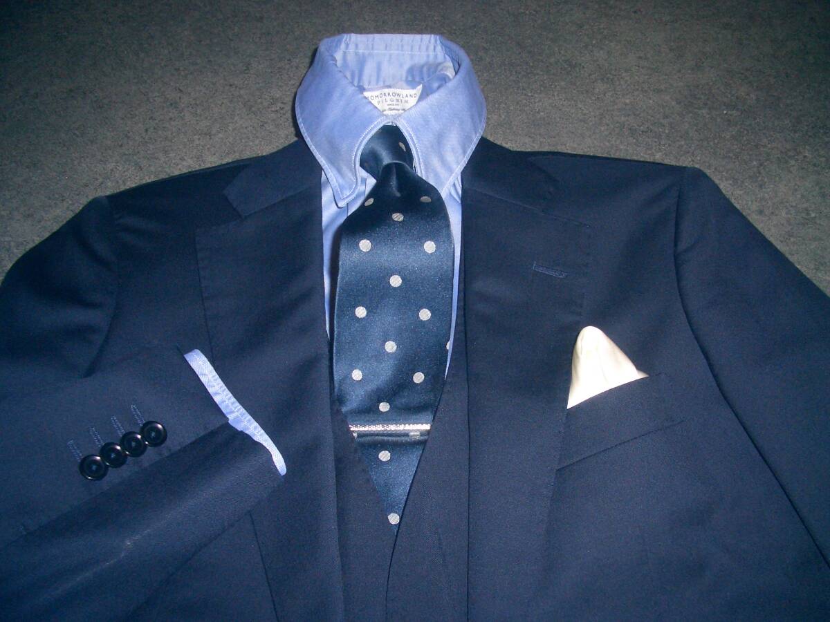 こちら、約19万円で購入したトゥモローランドの最高級のPILGRIMライン、1度のみ着用の美品、今期流行のネイビーのスリーピーススーツになります。