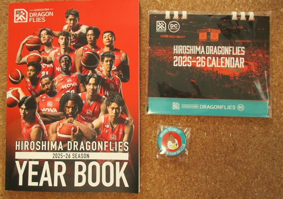 新品 3点セット 広島ドラゴンフライズ イヤーブック 缶バッチ カレンダー ファンクラブ Bリーグ アビィ 非売品含む