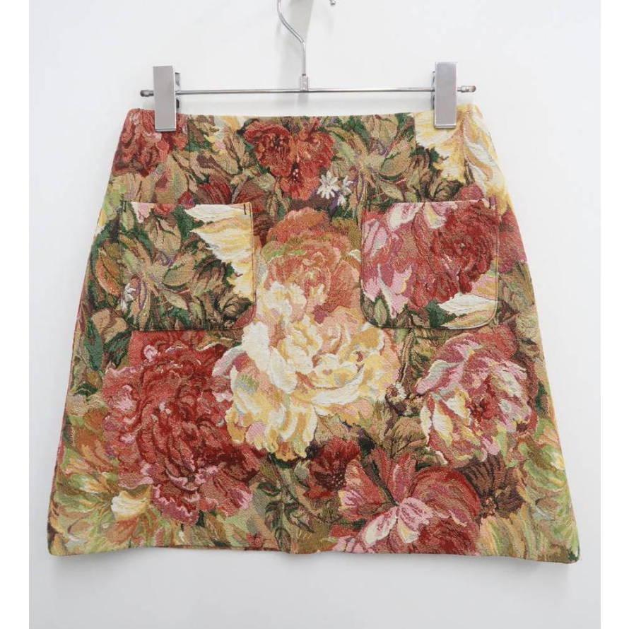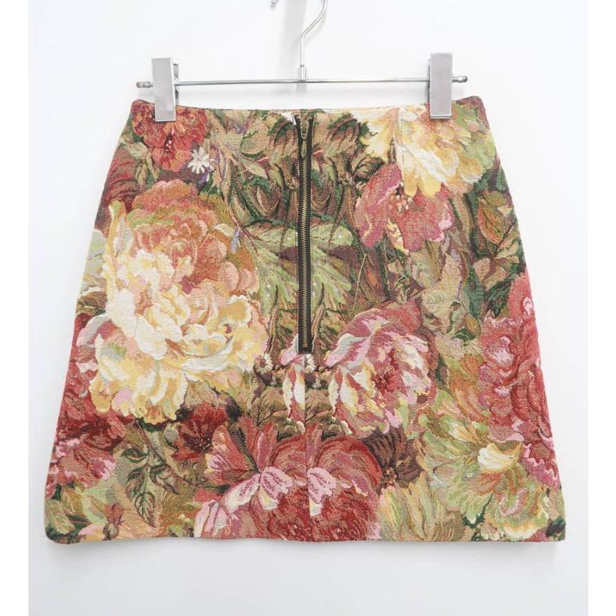 コーディネートのアクセントになる大人なデザインに目を引くスカート。レッグラインをスッキリと見せる台形フォルムがポイントで、1枚でも安心して履けるように裏地はパンツ仕様になっています。ウエストファスナー。花柄。フラワー。