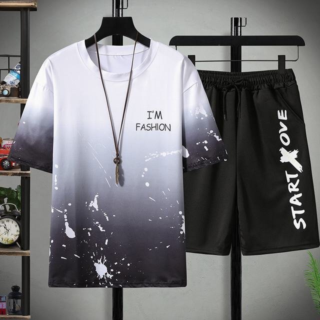 ◎ステイホーム STAY HOME、おうち時間、スポーツ、部屋着、ルームウェアで活躍するクルーネック半袖Tシャツとショートパンツの上下セットアップ。