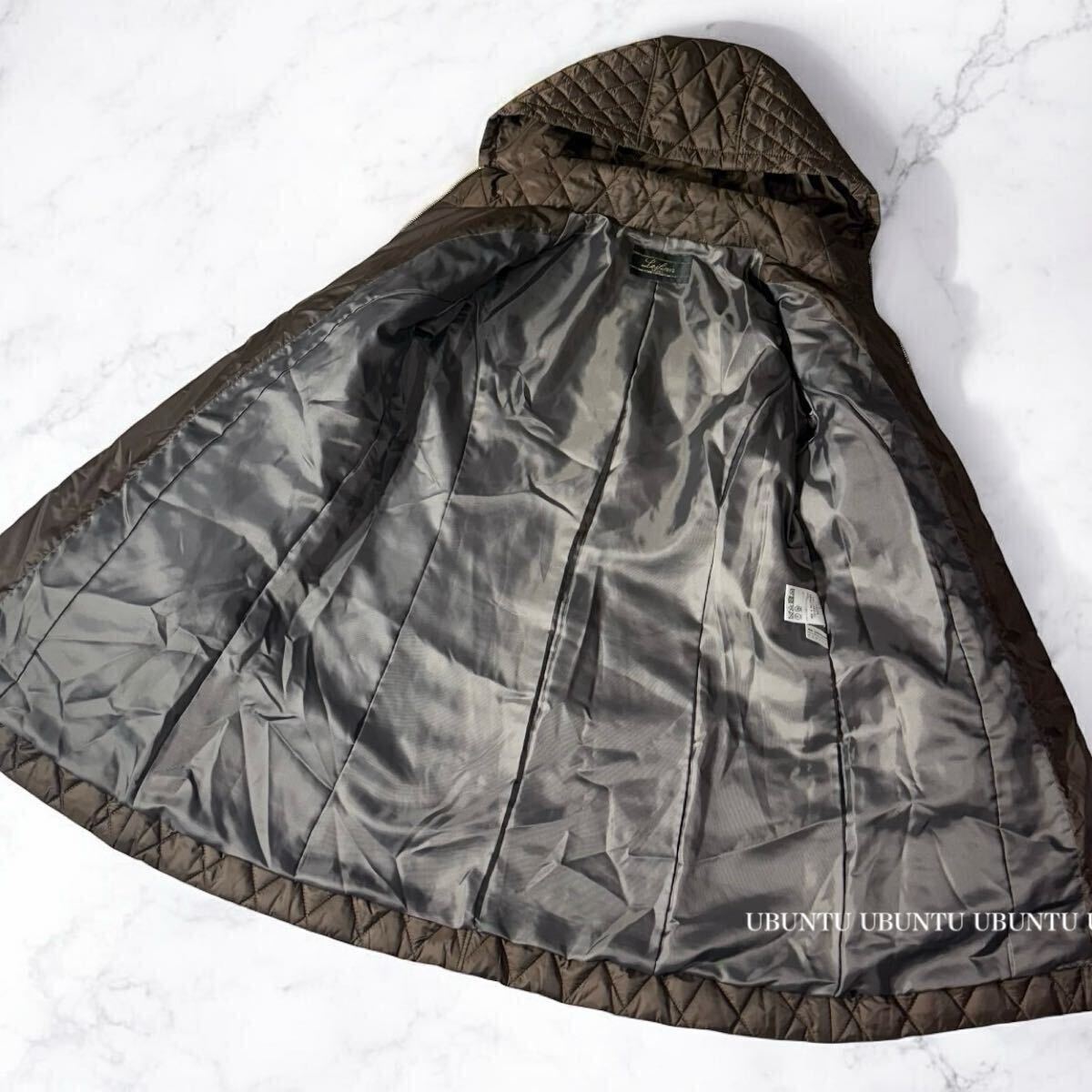 レリアンらしく高級感があり、きちんと綺麗見えするフーテッドジャケットコートです。