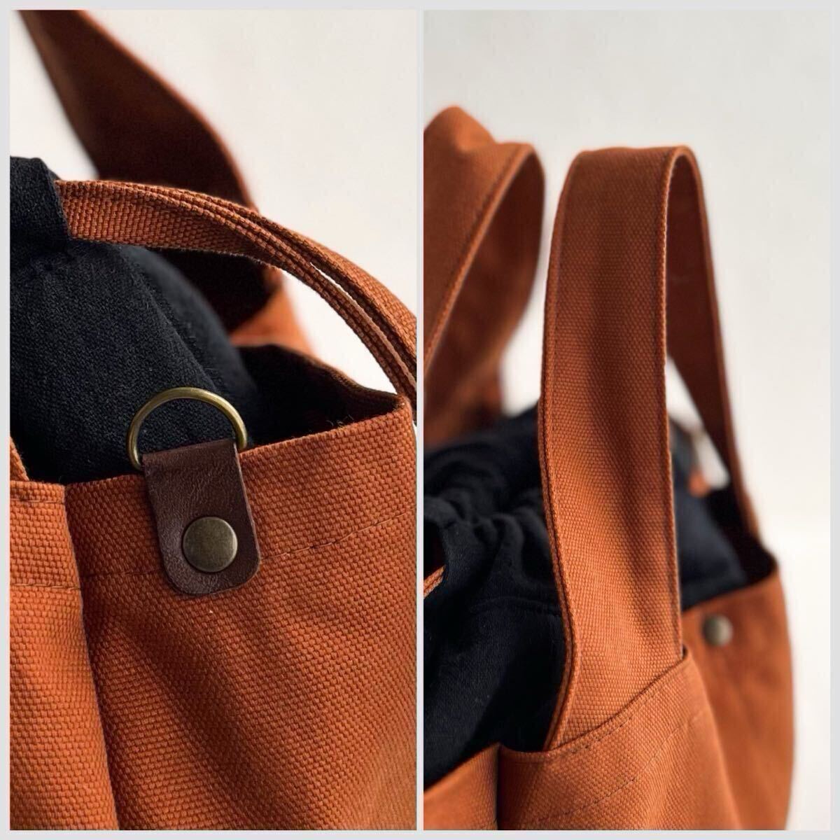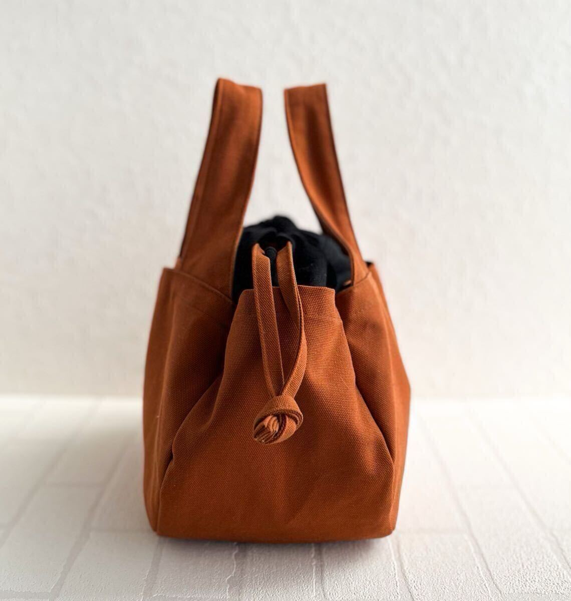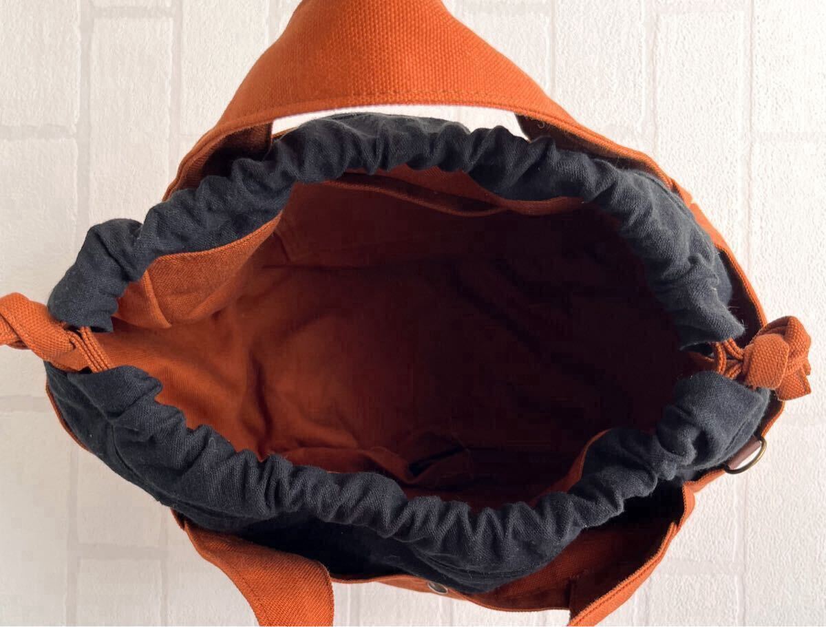 ◯レンガ色の柔らか11号帆布×巾着部分はヴィンテージ加工されたコットンリネン生地です♪