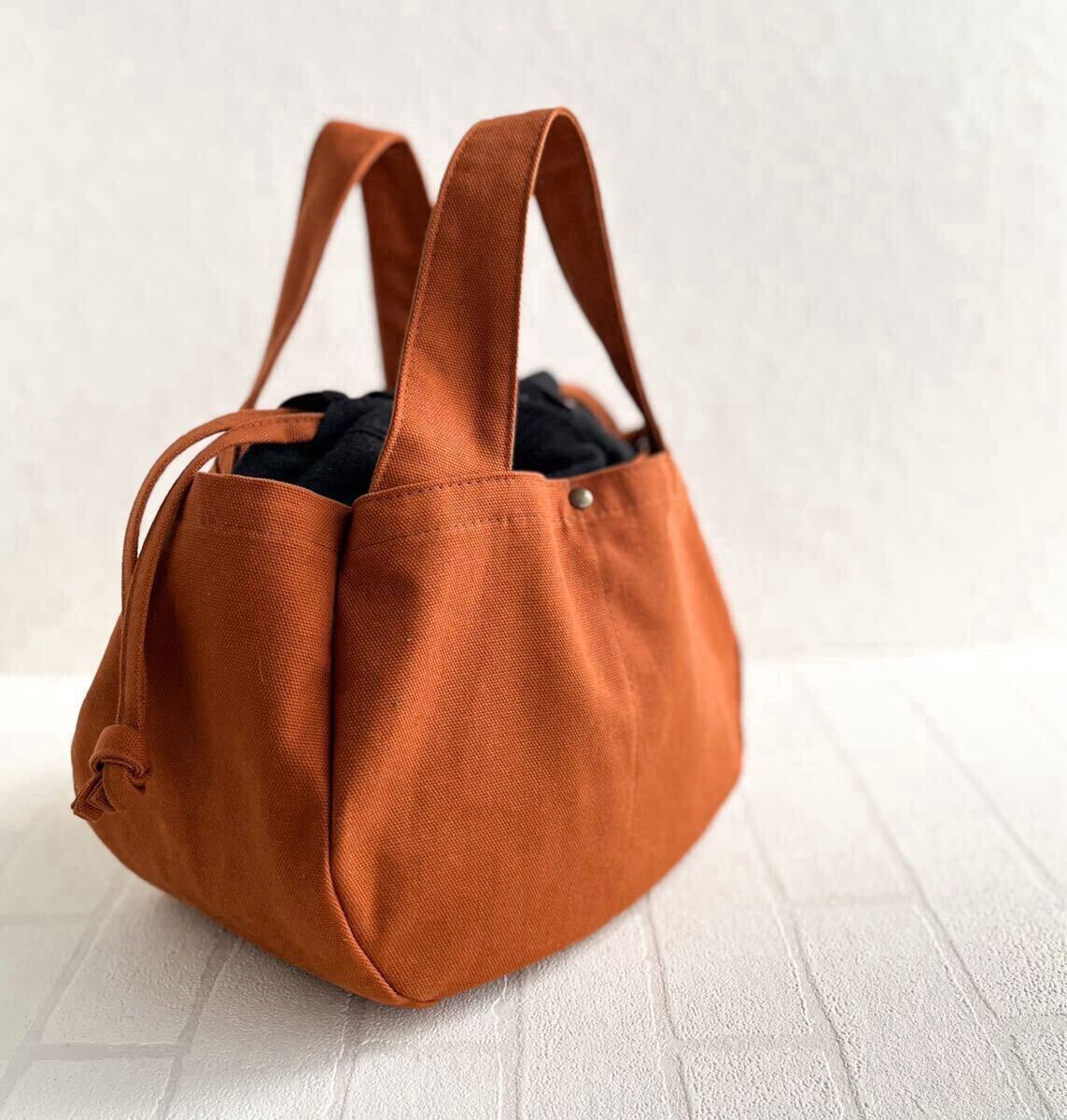 ○ころんと丸いフォルムが可愛らしい巾着トートバッグです(*´`*)