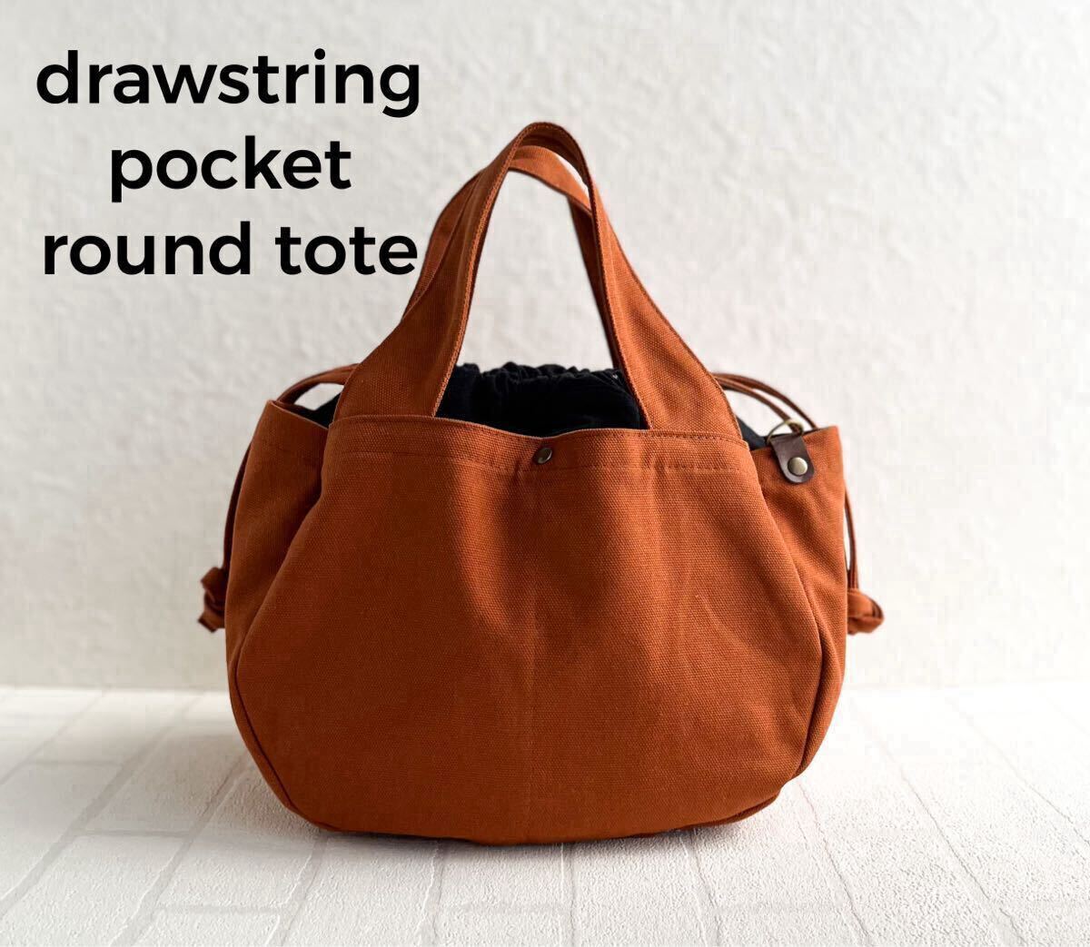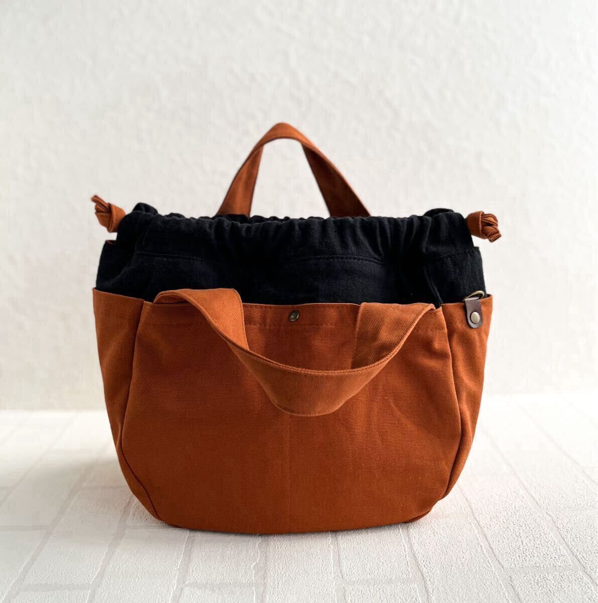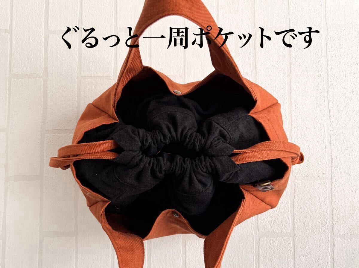 ●ポケットいっぱいころんと丸い巾着トートバッグ●