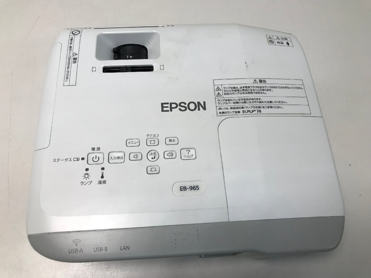 【商品名、メーカー(ブランド)名】 【★38-352】■中古■EPSON 2013年 EB-965 ビジネスプロジェクター(5176) 【はじめに】 営業時間は平日 10:00~17:00までとなります。※土日祝休業 落札後の連絡は、取引ナビでお願い致します。 発送は佐川急便 飛脚宅配便のみです。 タイトルに「直接引取り」の文言がなければ来店対応不可です。発送のみの対応となりますのでご了承ください。 メール便やコンパクト便など佐川急便以外の発送は行っておりませんのでご了承下さい。 ※沖縄県他、離島地域(中継料金の発生する地域)へのお届けの際は送料着払い(配送会社指定の料金) での発送となります。 ※一部離島地域では着払い不可の地域があるため店舗より元払いで発送させていただきますが、別途中継料金をお支払いしていただく場合があります。 他商品との同梱発送はできません。あらゆる事故防止のために単品での発送となりますのでご了承ください。 領収書は発行しておりません。詳しくは下部の【領収書について】をお読み下さい。 商品に不良があった場合は「返品返金」にて対応致します。 交換や修理は行っておりませんので予めご了承下さい。 以下、全てお読み下さい。 【商品について】 当ストア商品をご覧頂き有難うございます。必ず最後まで説明文をお読み下さい。 いかなる場合でも内容以外の対応は致しかねます。 入札は内容に同意されたものとさせて頂きます。 こちらのお品物は【中古品】です。 動作OK リモコン付 【状態ランク・商品状態】※当店査定基準参考下さい。 Sランク