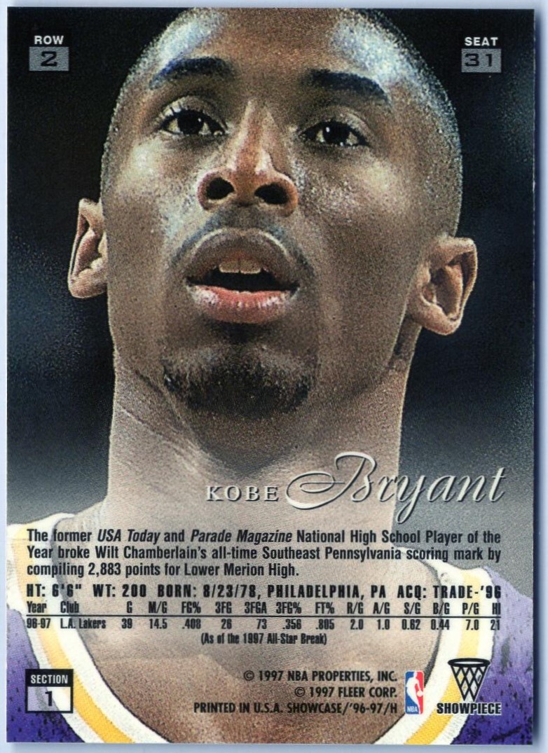 【コービーブライアント】NBA96-97 Flair Showcase RC #31 Row2 KobeBryant/LosAngelesLakers Rookieルーキー