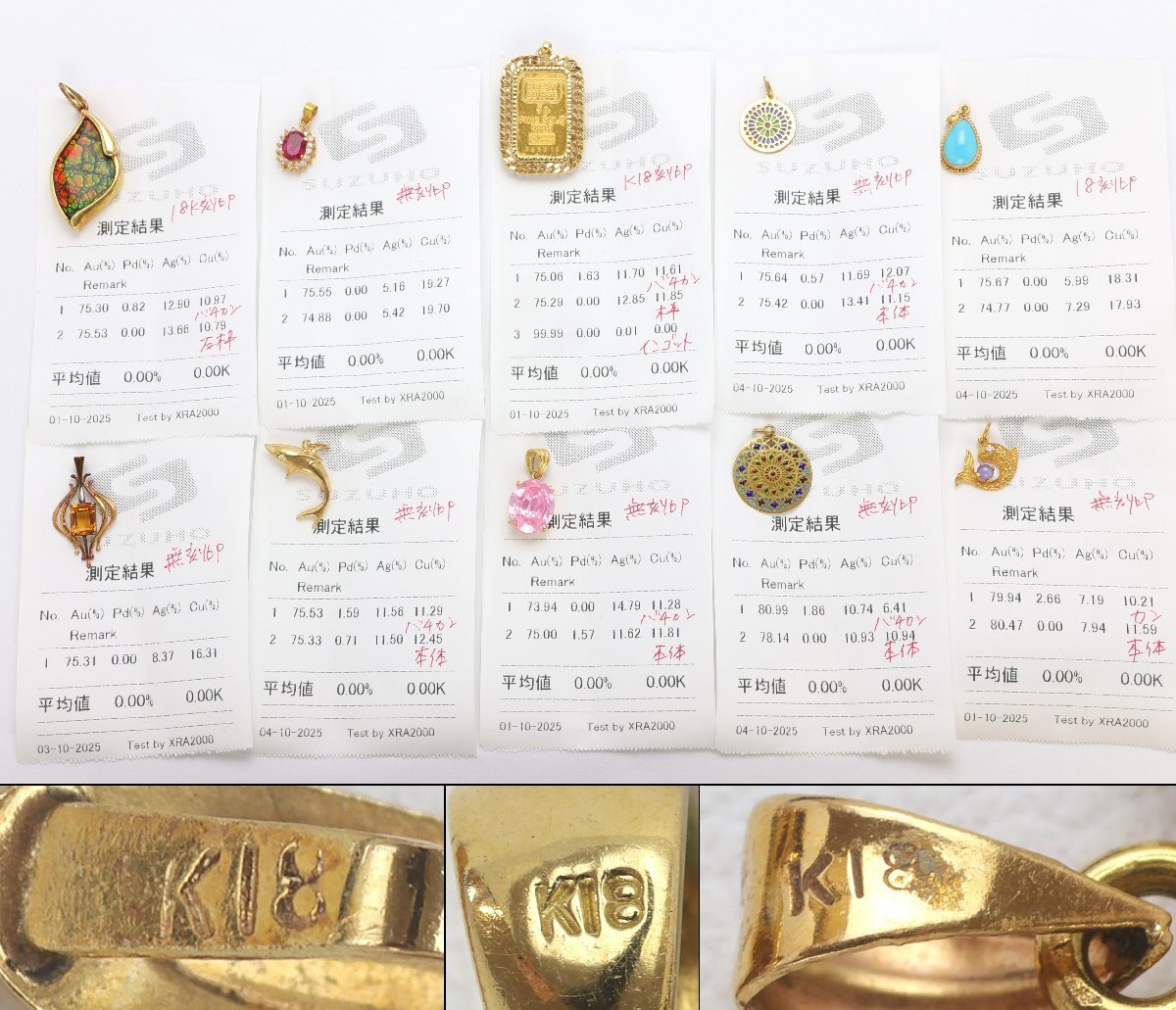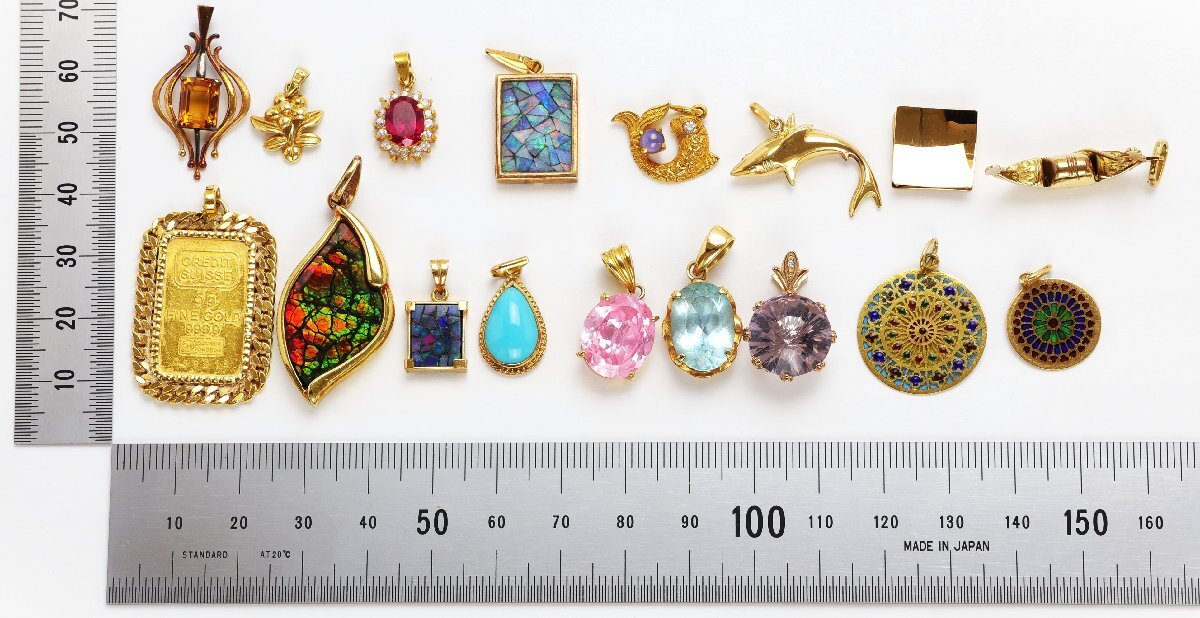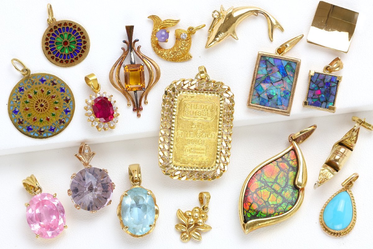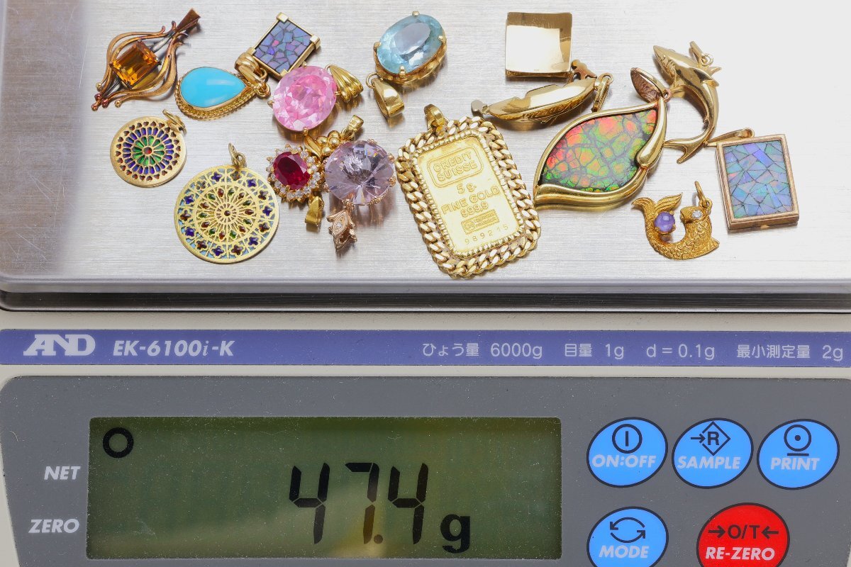 おたからや◆K18相当ジュエリーおまとめ(約47.4g)インゴット付ペンダントトップ,石付ペンダントトップ※X線結果ご参照下さい【Z-YA02511】