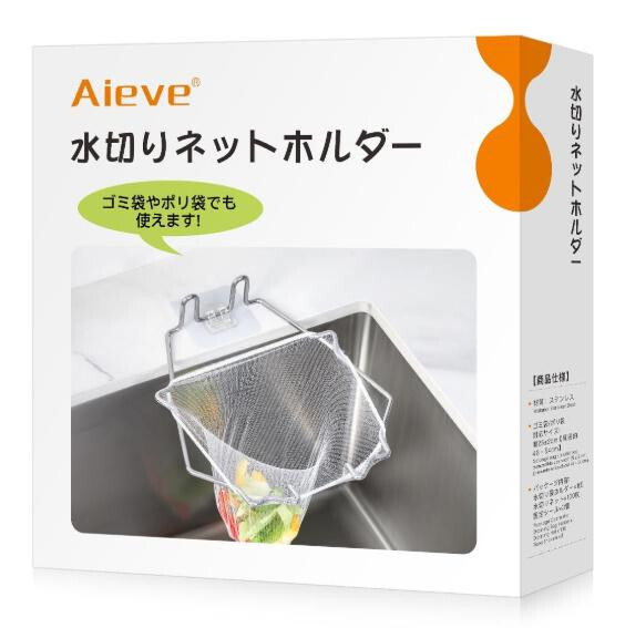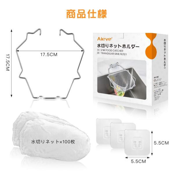 Aieve 三角コーナー いらず サンカクコーナー 水切りネットホルダー 100枚水切りネット ポリ袋ホルダー生ゴミ入れ 使い捨て 浮かせる ステンレス 錆びない キッチン シンク 台所