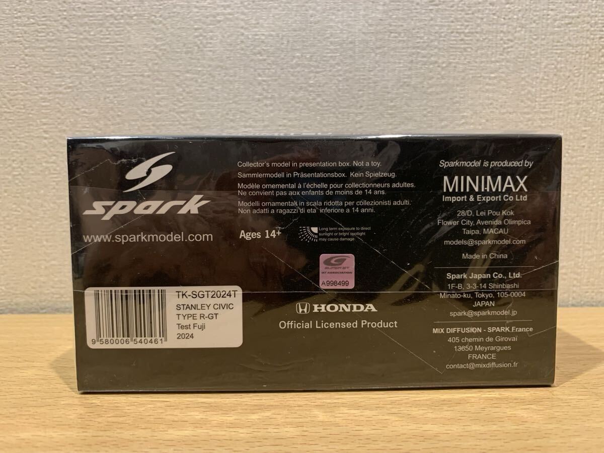 特注品 スパーク1/43 STANLEY CIVIC TYPE R-GT Test Fuji 2024 GT500 になります。