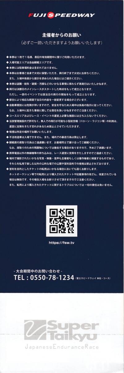 ◆◇【\2,300お得/送料無料】 ENEOSスーパー耐久シリーズ2025Empowered by BRIDGESTONE第7戦富士スピードウェイ開催観戦チケット(自由観戦エリア)◇◆