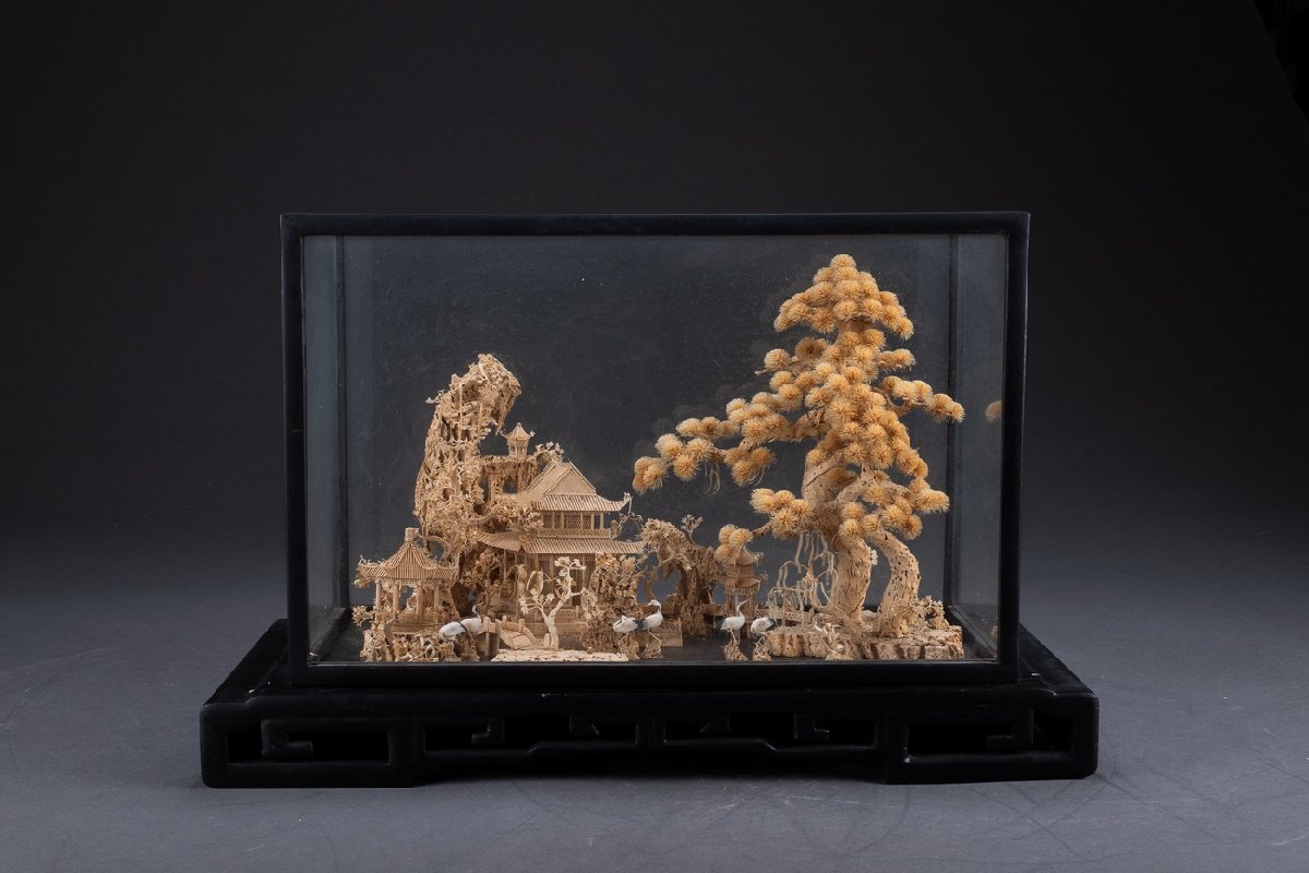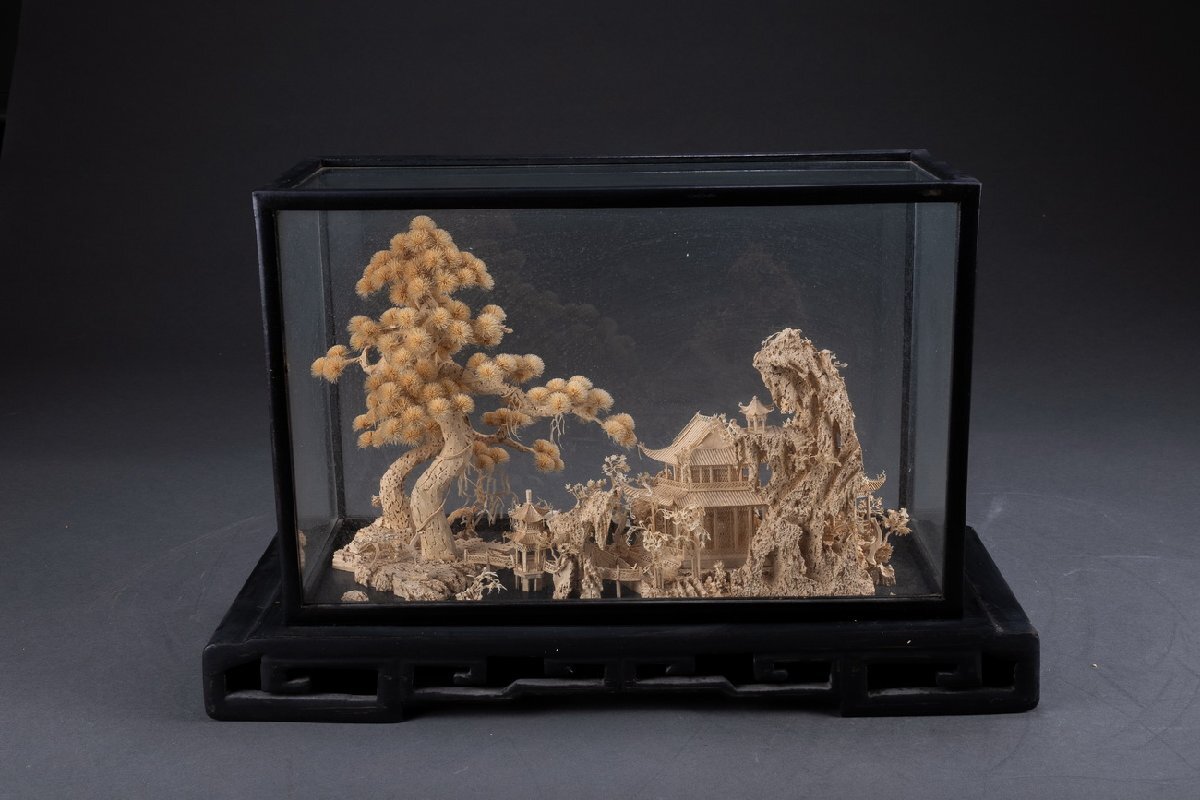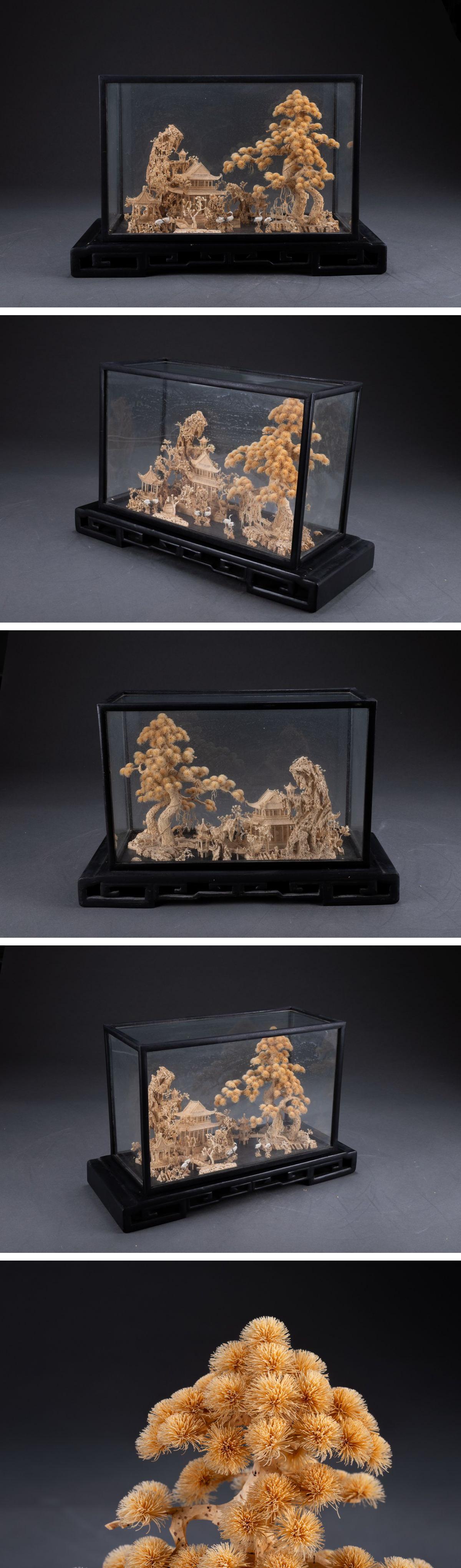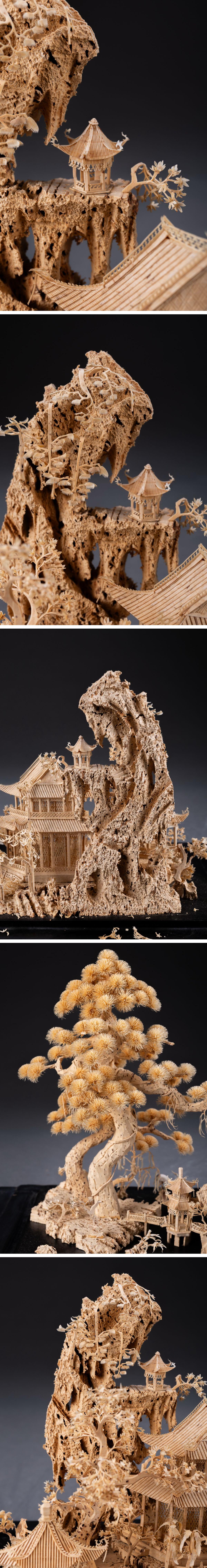 【清】某有名オークション購入 時代物 木彫り 透かし彫り 山水楼閣置物 古置物 古擺件 中国伝来 古美術 時代コレクション7L8-291S06