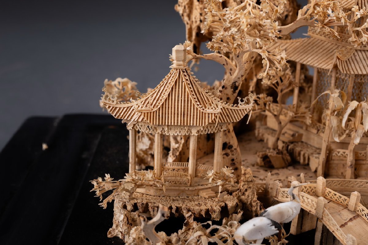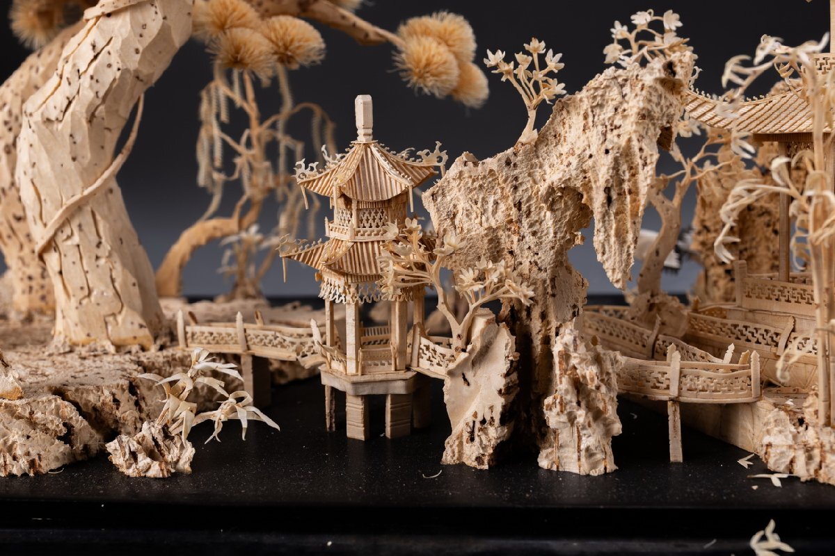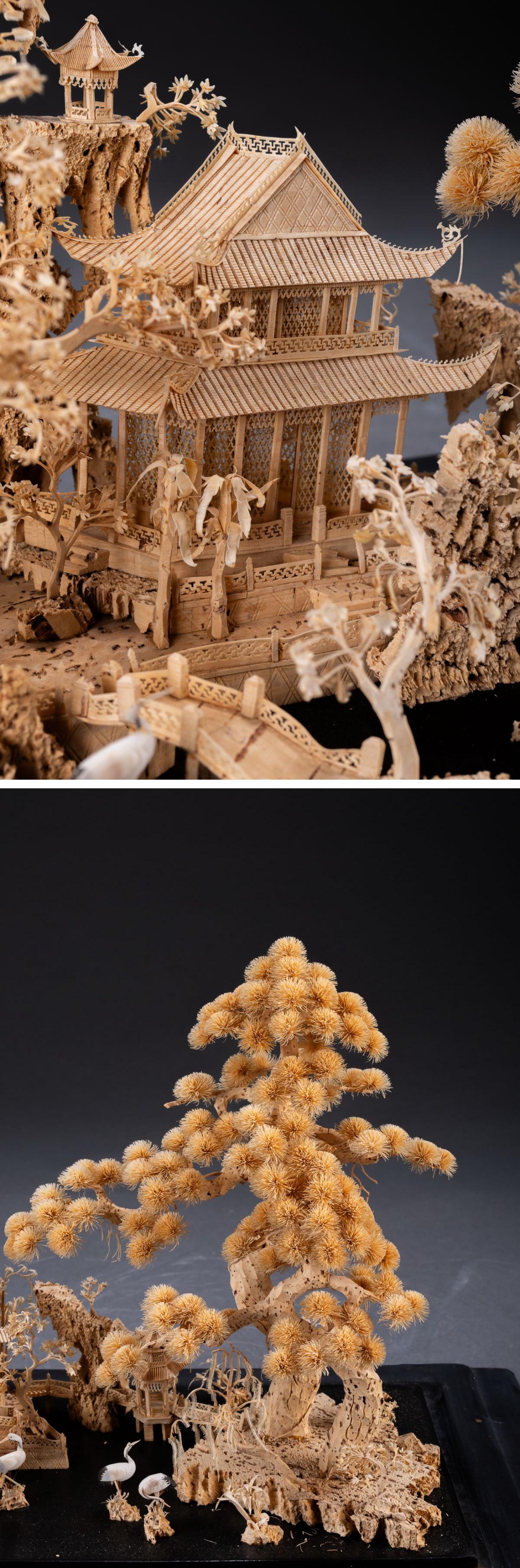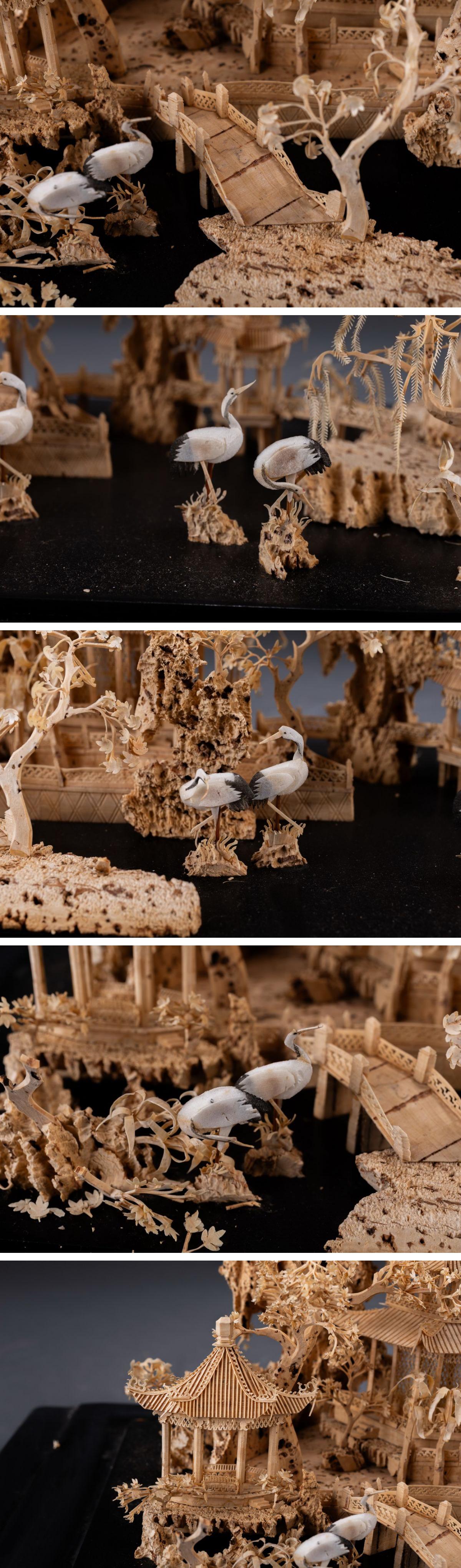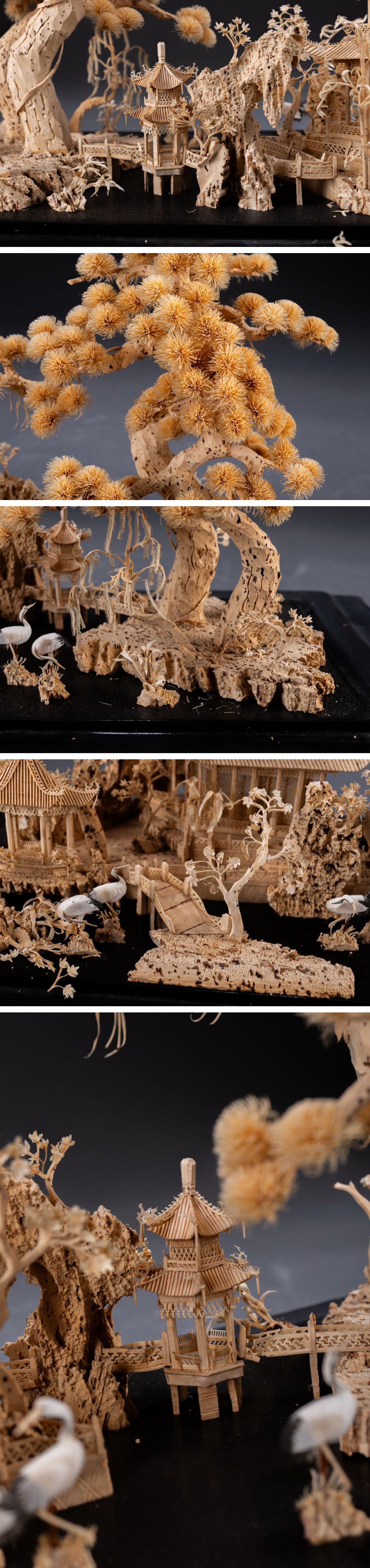 【清】某有名オークション購入 時代物 木彫り 透かし彫り 山水楼閣置物 古置物 古擺件 中国伝来 古美術 時代コレクション7L8-291S06