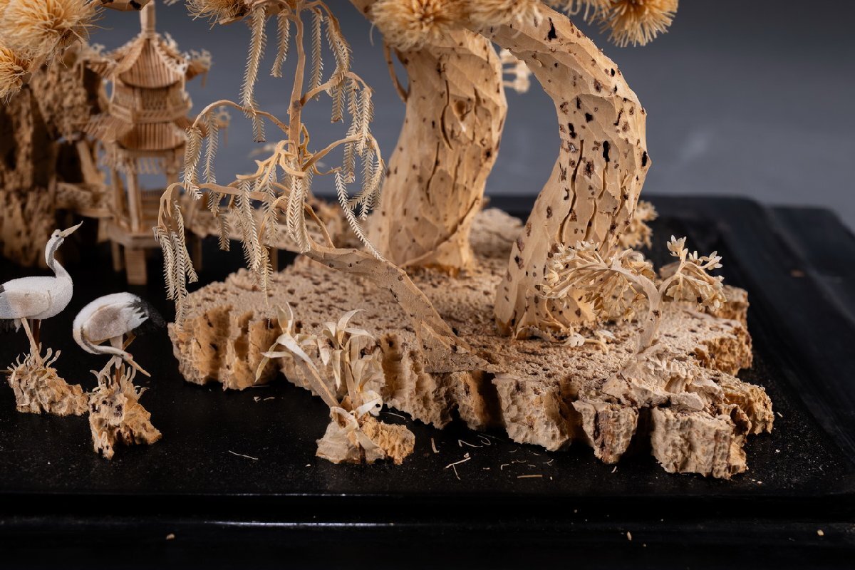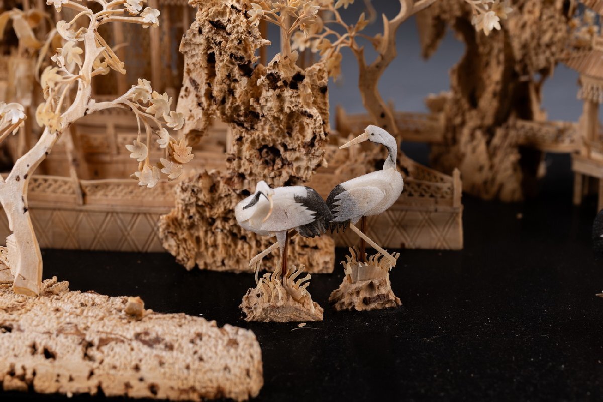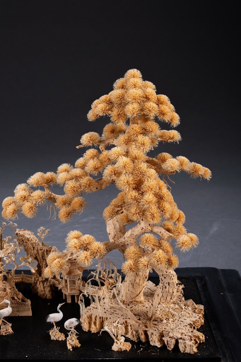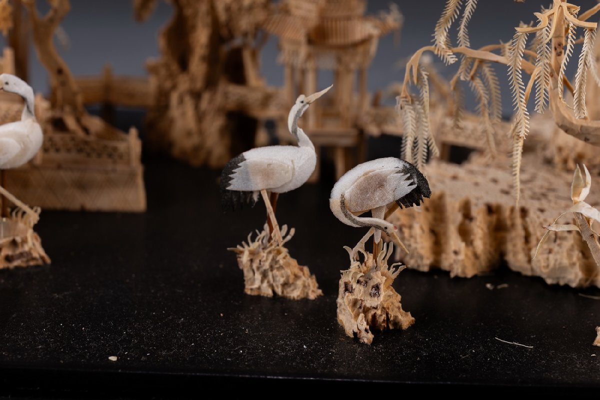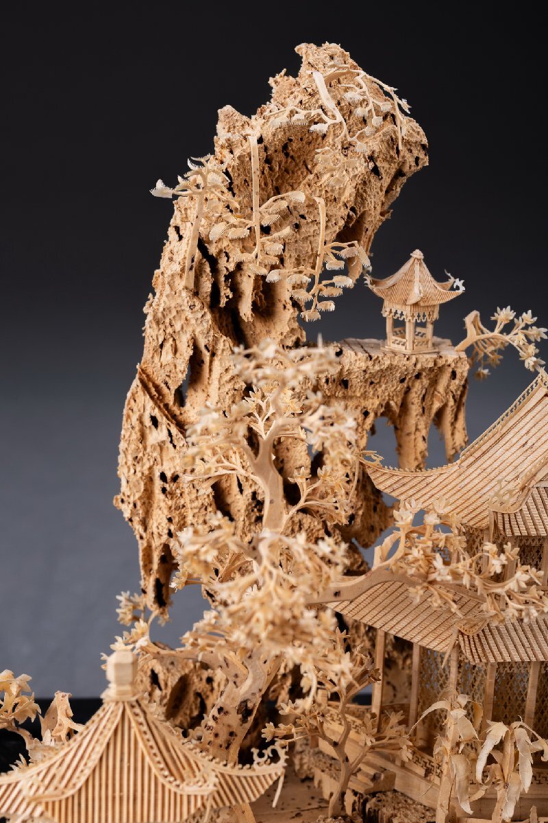 【清】某有名オークション購入 時代物 木彫り 透かし彫り 山水楼閣置物 古置物 古擺件 中国伝来 古美術 時代コレクション7L8-291S06