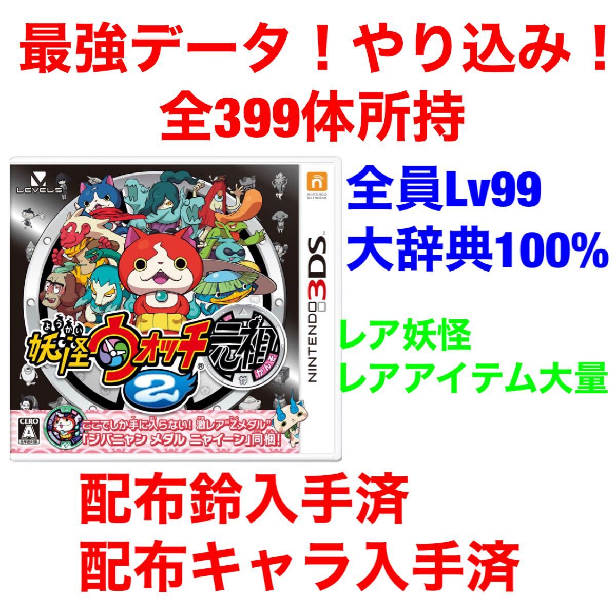 『妖怪ウォッチ バスターズ』は、Nintendo 3DS向けの人気ゲームで、全399体の妖怪を収集し、全員がレベル99に達しています。