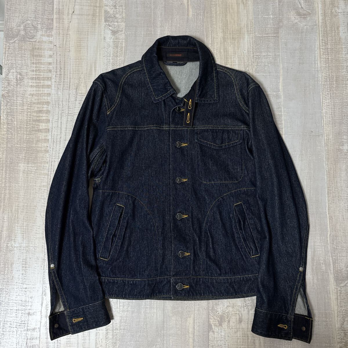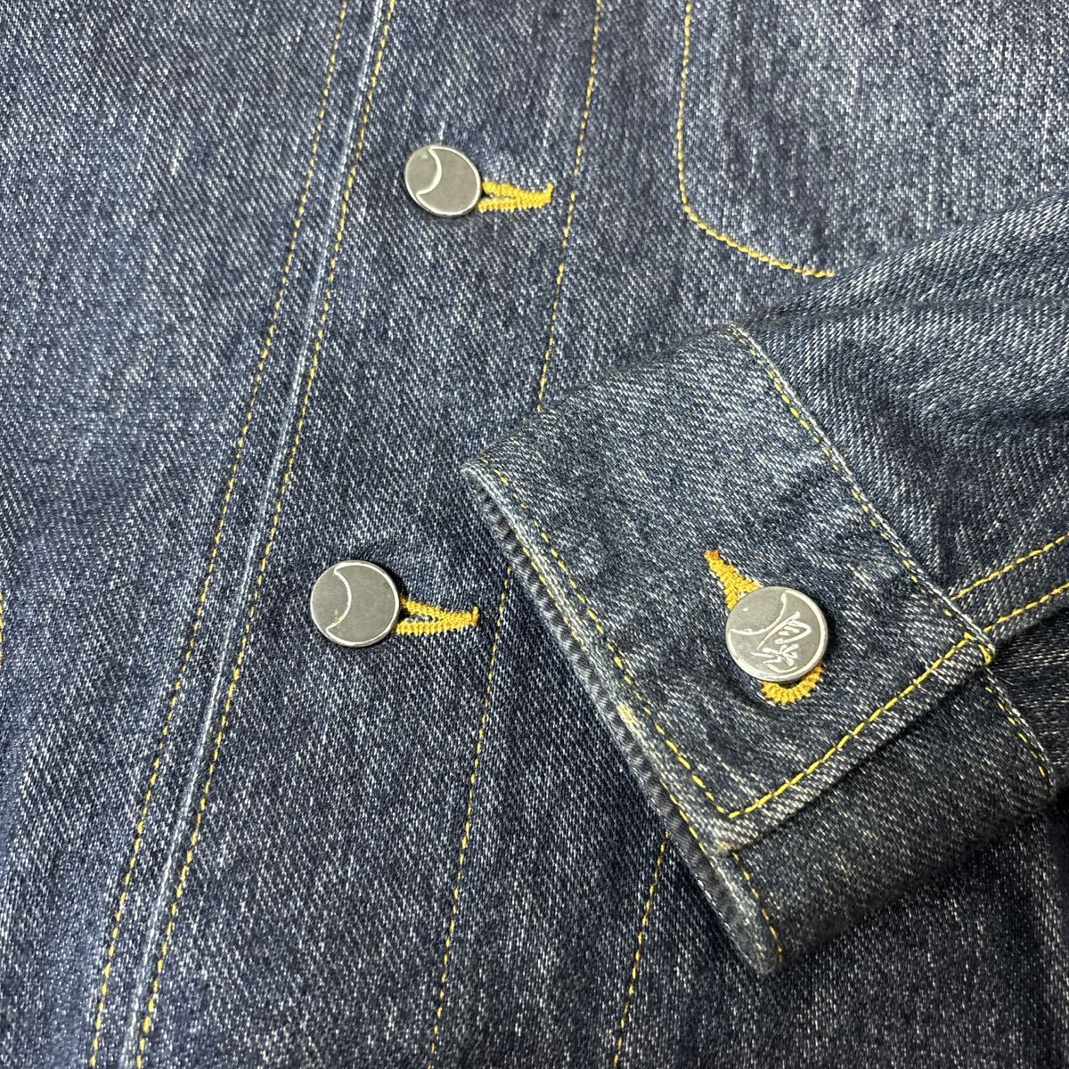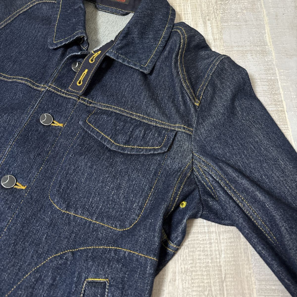 濃紺デニムでオレンジステッチが映えるデザインのデニムジャケットです。