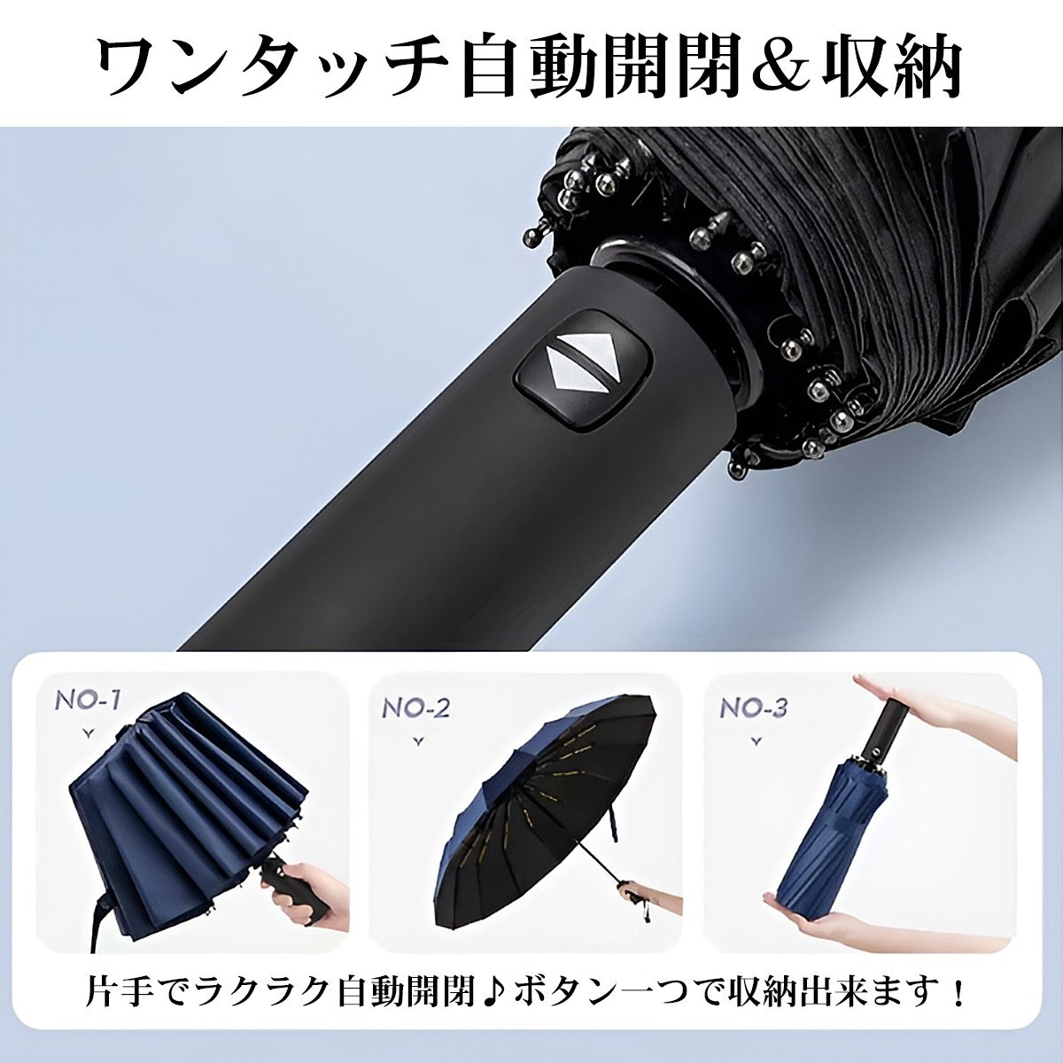折りたたみ傘 軽量 大きめ 自動開閉 傘 ワンタッチ 晴雨兼用 雨傘 日傘 撥水加工 耐強風 折り畳み傘 通勤 通学 12本骨 108cm AK-01BL