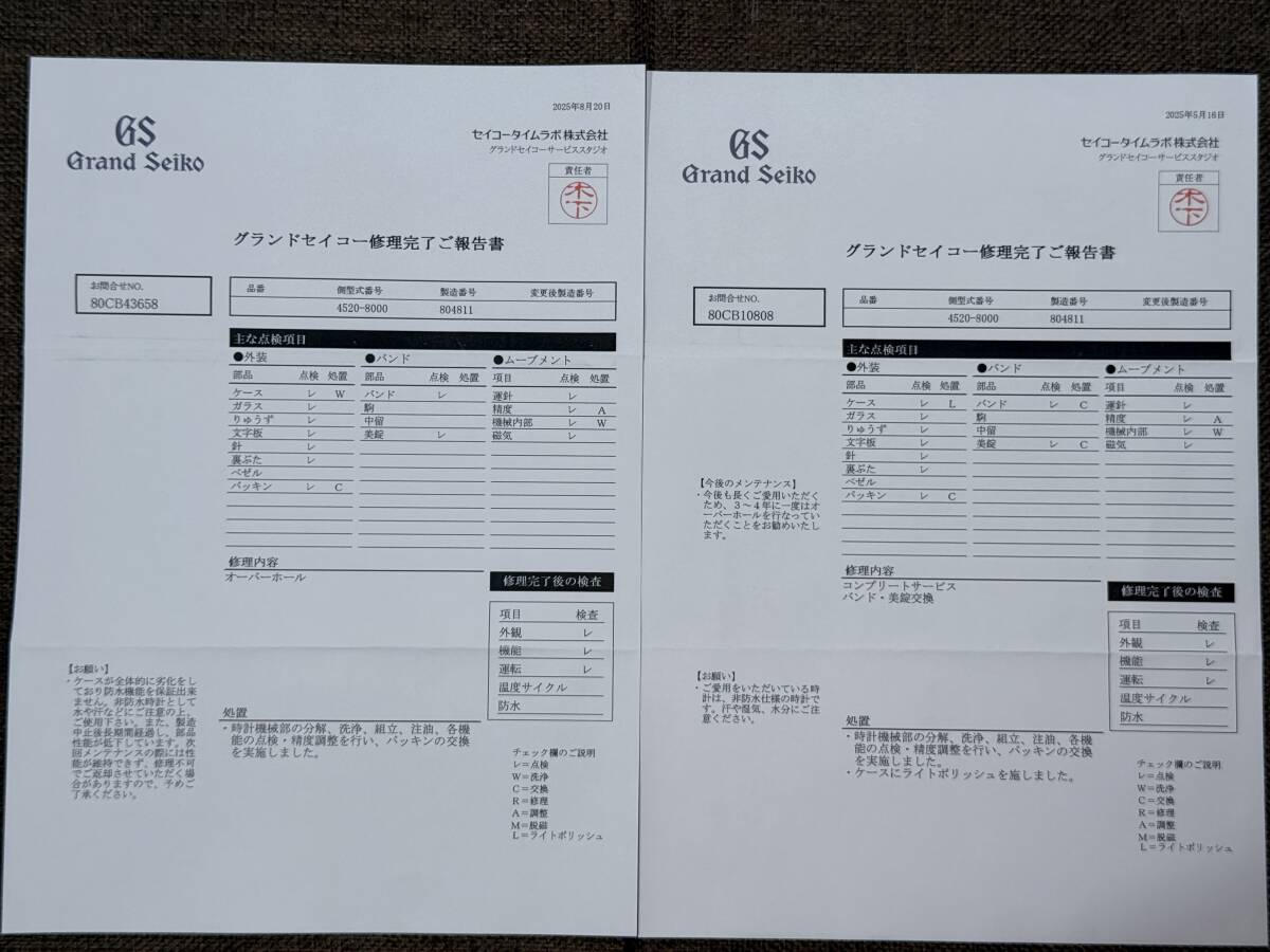 本体、ベルト、修理完了報告書2通