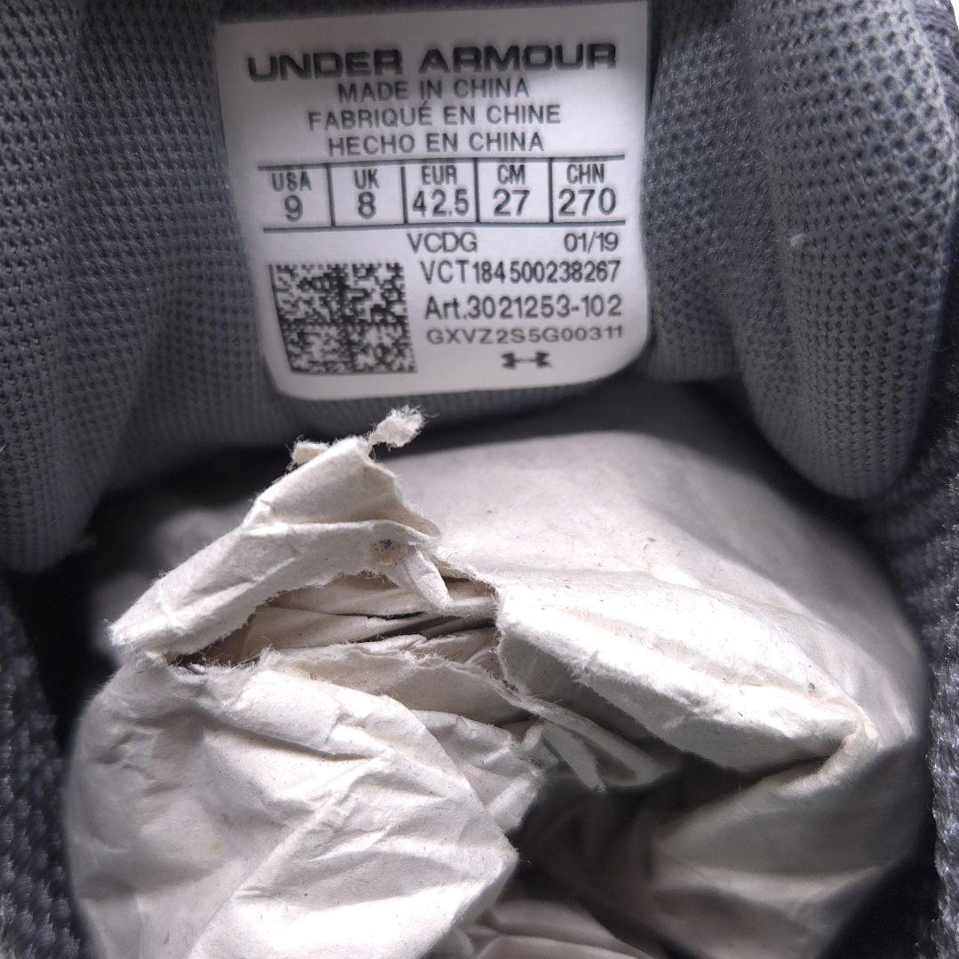 美品 UNDER ARMOUR Charged Europa 2 アンダーアーマー スニーカー ランニングシューズ 27cm グレー 軽量 クリーニング済み