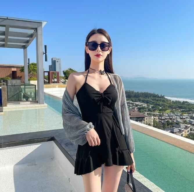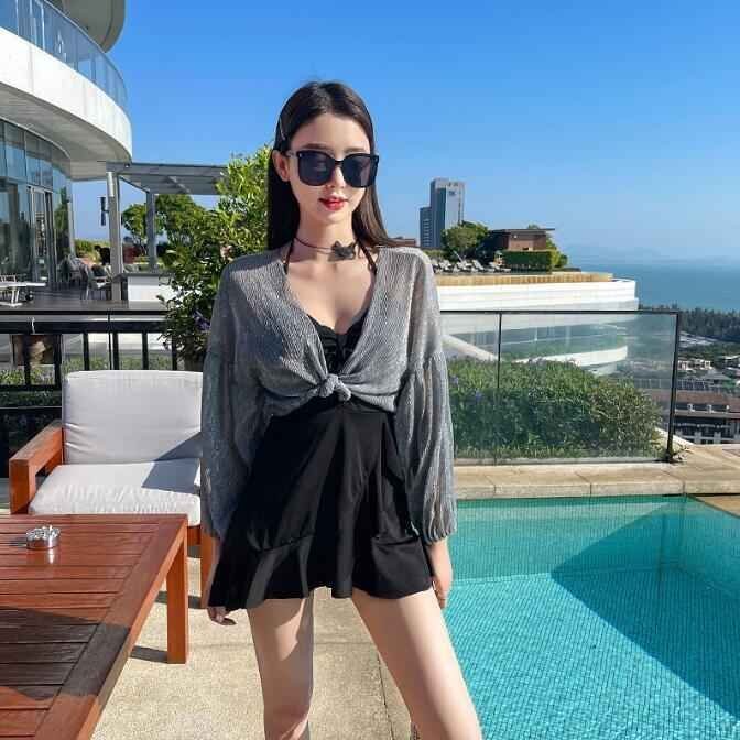 レディース 体型カバー 水着 オールインワン ワンピース水着 スカート水着 フリル スイムウェア L ブルー