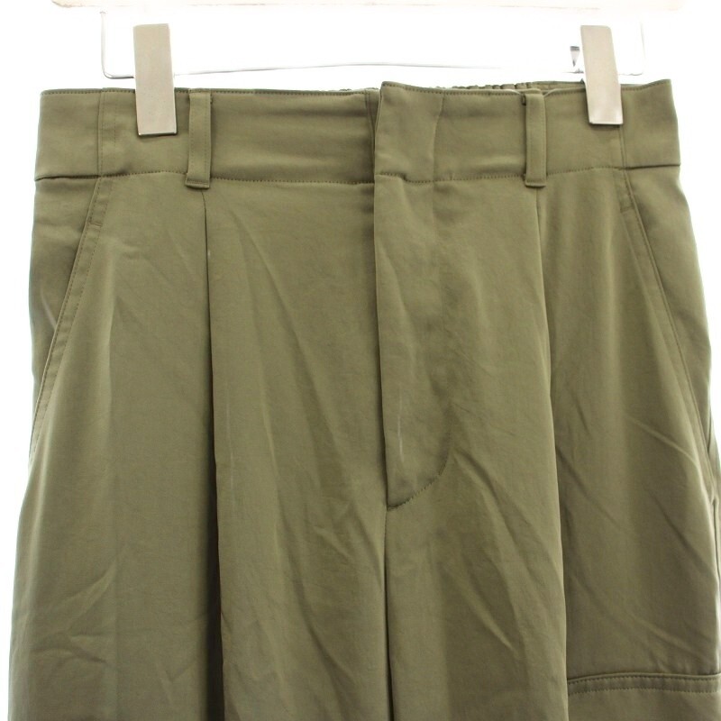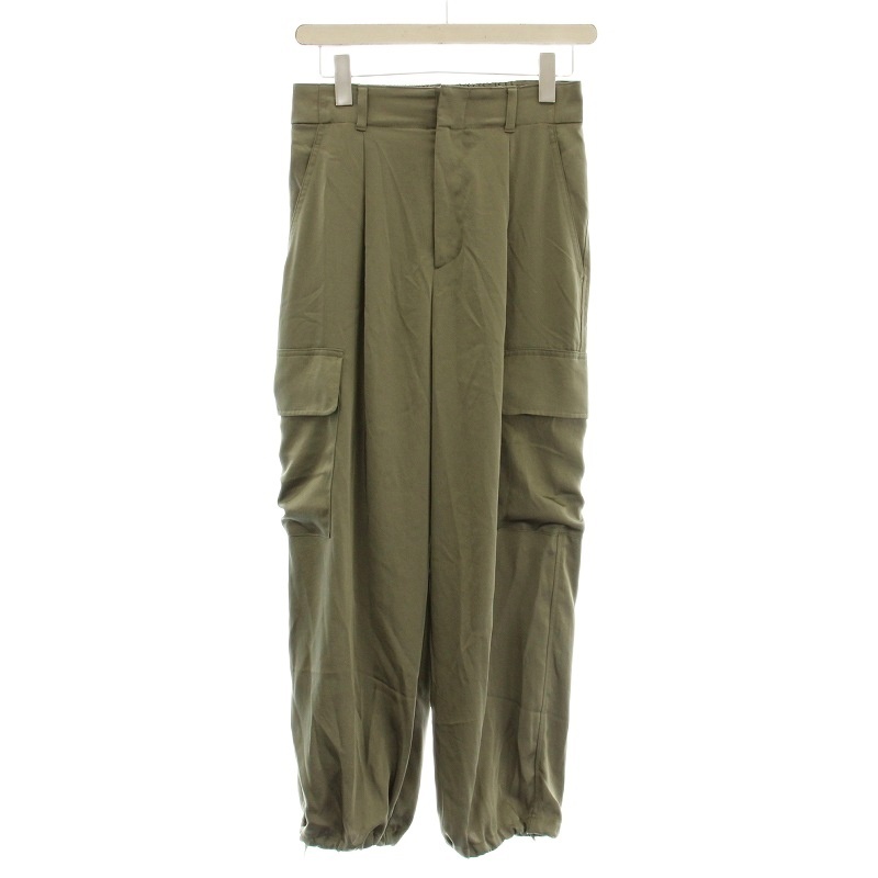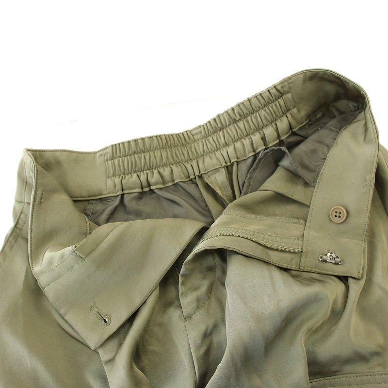 グリーンレーベル ユナイテッドアローズ green label relaxing サテン カーゴパンツ ドローコード 38 カーキ