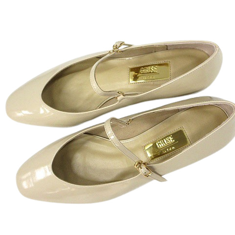 未使用品 ルタロン Le Talon GRISE レザーラウンドメリージェーン パンプス 23.0cm ベージュ 牛革 フラットシューズ 靴 レディース