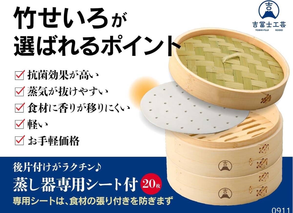 【吉冨士工芸】 竹せいろ 2段 セット 蒸し器 中華 せいろ セイロ専用シート20枚付 (21cm2段蓋付きタイプ)
