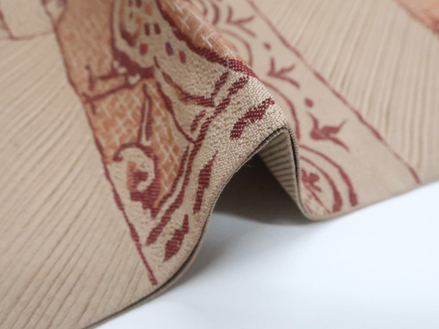リサイクル商品のため、折れ山跡や手先に薄汚れございますが、ご使用可能なお品です。 地色はベージュです。 1枚目の画像が近いお色かと思われます。 素材は正絹です。 日本国内から発送いたしております。 発送後は追跡番号をお知らせいたします。 スタッフによる手作業での検品採寸済み。 |