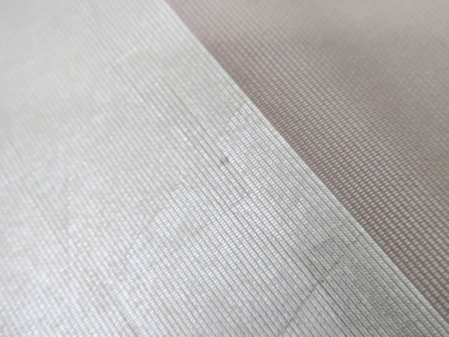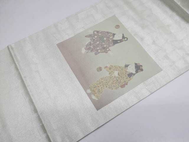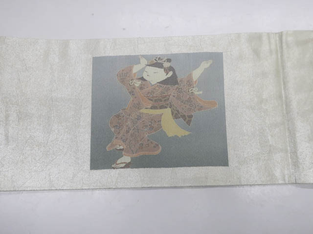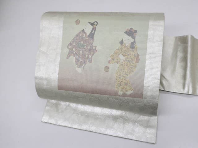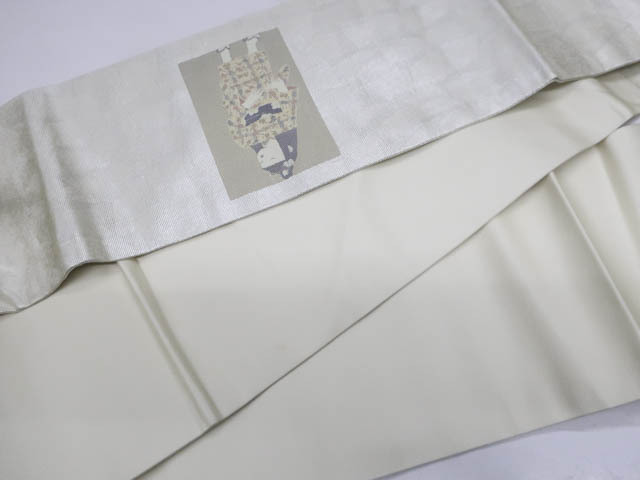 リサイクル商品の為、たれ先裏に文字、太鼓部分に小さなしみがございますがご着用いただけると存じます。 地色は シルバーです。 1枚目の画像が近いお色かと思われます。 素材は正絹です。 |