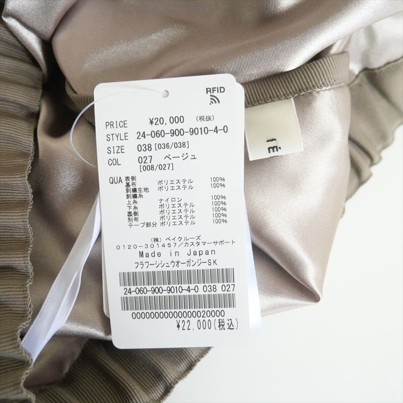 2024AW / 未使用 / IENA スカート イエナ / フラワー刺繍オーガンジースカート 38 / 24060900901040 / 2505-0173