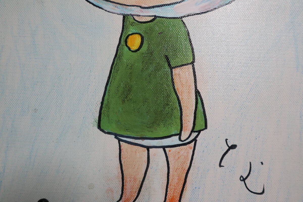 【摸写】奈良美智〇油彩画●人物画●包帯の少女〇画寸 縦26cm×幅23cm